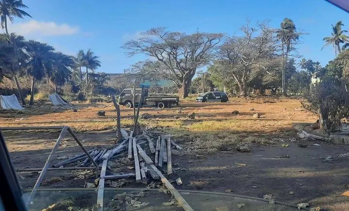 这是1月20日早晨在汤加首都努库阿洛法拍摄的遭受海啸侵袭后的景象。新华社发