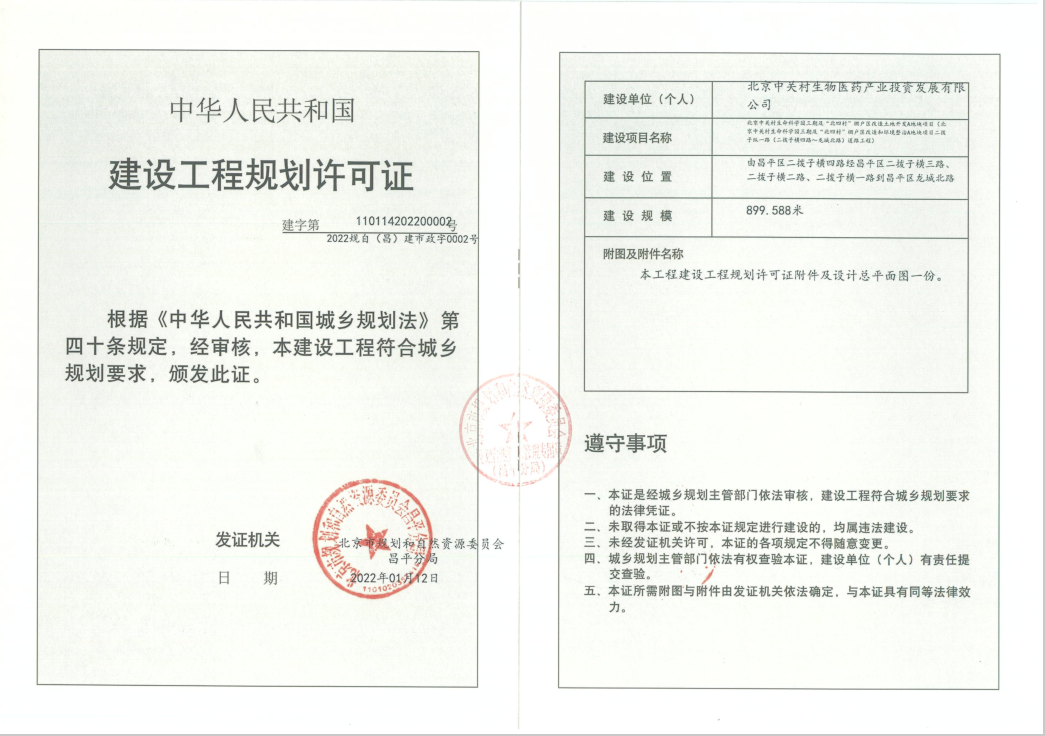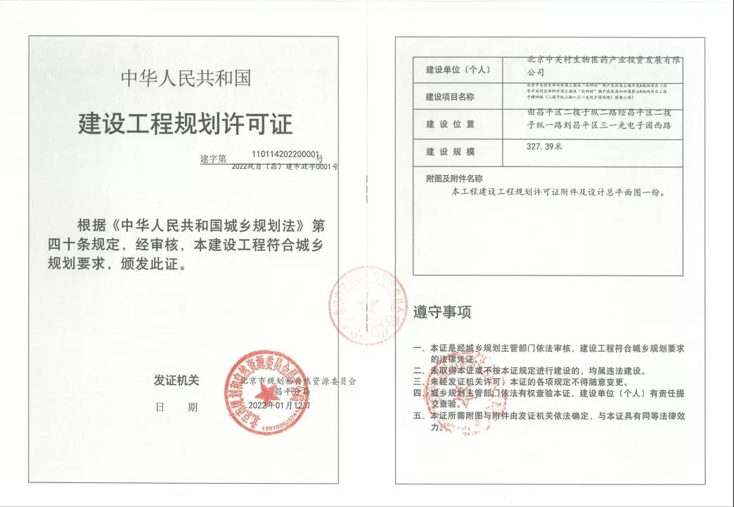 近日,未来科学城集团取得北京市规划与自然资源委员会昌平分局核发的北京中关村生命科学园三期及“北四村”棚户区改造和环境整治A地块项目,二拨子横四路、二拨子纵一路道路工程规划许可证。