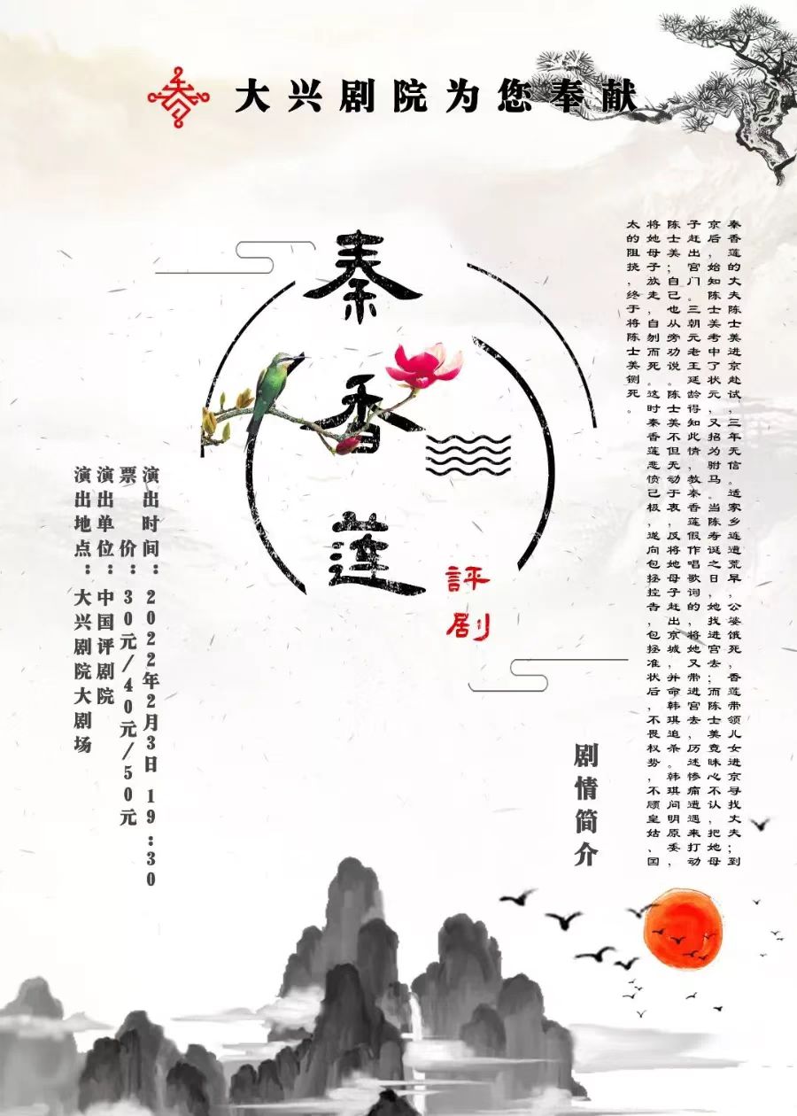 2022年春节期间,大兴区文化和旅游局将在大兴剧院举办“新春嘉年华”精品文化演出季活动。中国评剧院、北京京剧院、北京市河北梆子剧团、中国广播艺术团、北京民族乐团等优秀院团将为市民献上9场演出。