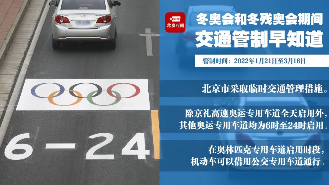 根据日前北京市政府发布的《关于北京2022年冬奥会和冬残奥会期间北京市设置奥林匹克专用车道有关事项的通告》,奥林匹克专用车道于1月21日正式启用,每天启用时段为6时至24时。