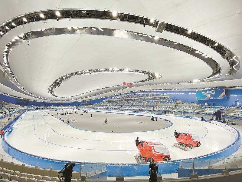 冬奥会期间,国家速滑馆承担速度滑冰项目的比赛和训练,共产生14块金牌,是冬奥会产生金牌数量最多的单个场馆。