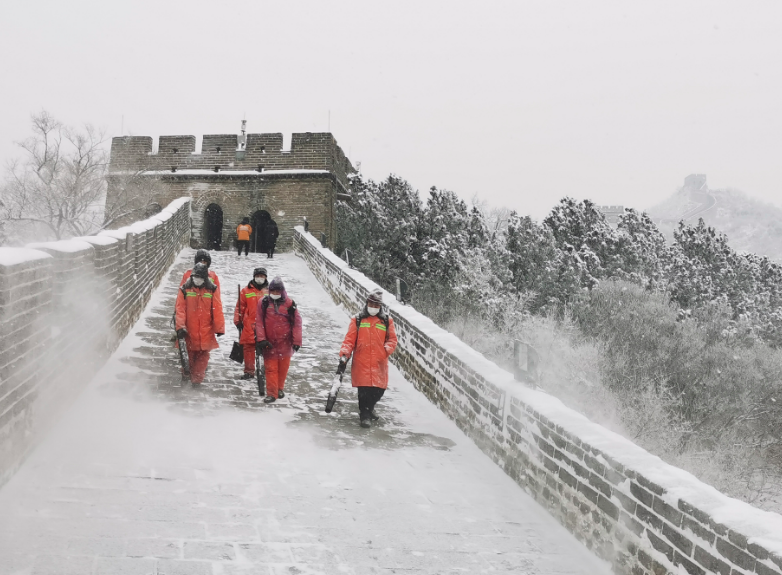 据了解,多年来,八达岭景区加强文物保护,城上除雪全部采用人工清理方式,坚决杜绝因投放融雪剂对墙体造成腐蚀破坏,确保游客人身和文物本身都安全。