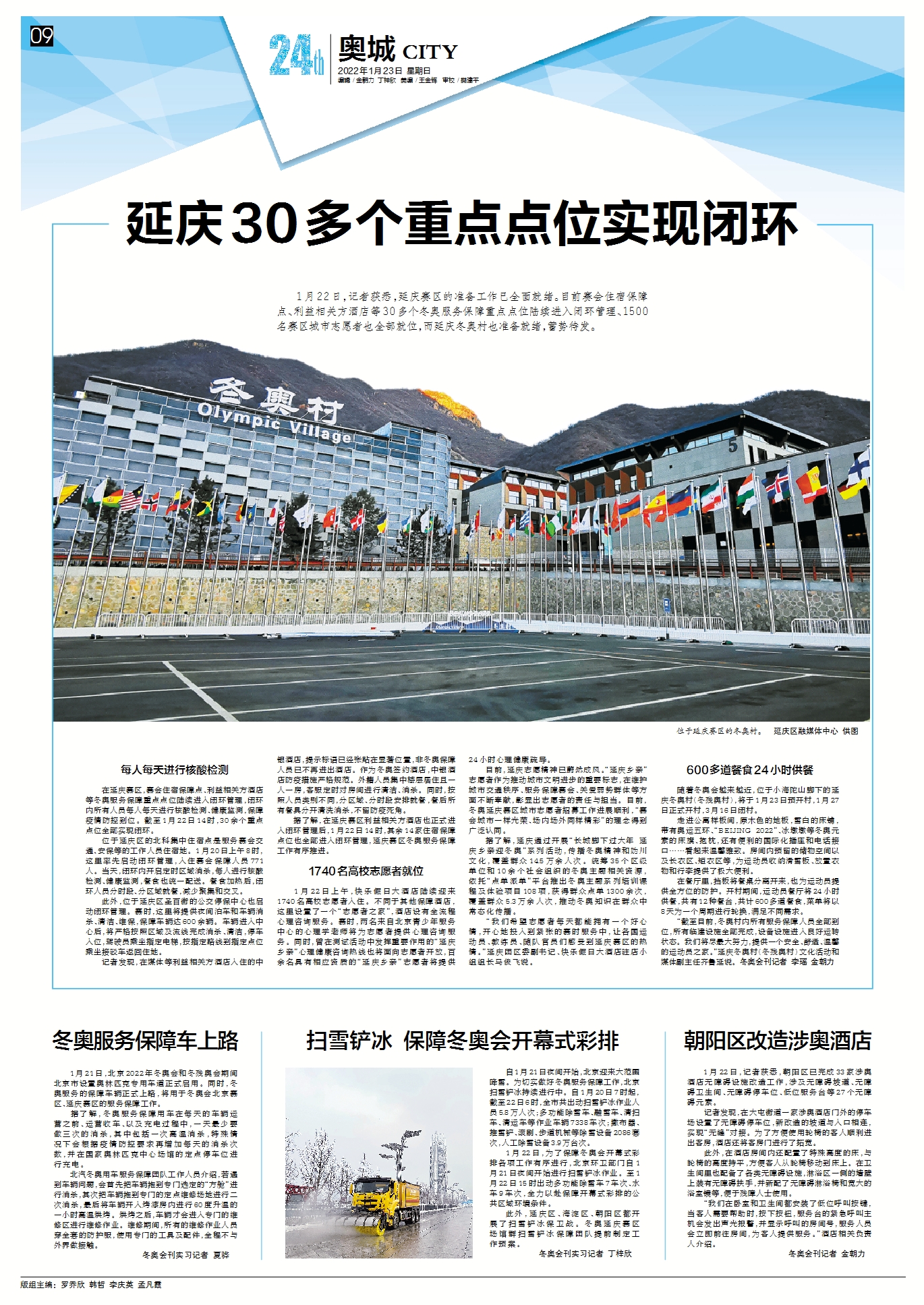 在延庆赛区,赛会住宿保障点、利益相关方酒店等冬奥服务保障重点点位陆续进入闭环管理,闭环内所有人员每人每天进行核酸检测、健康监测,保障疫情防控到位。截至1月22日14时,30余个重点点位全部实现闭环。
