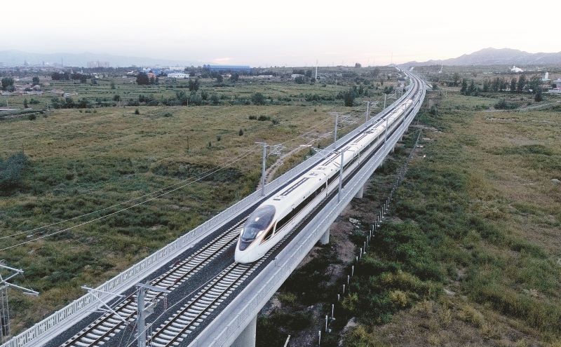 复兴号动车组在河北省张家口市宣化区龙洋河特大桥上行驶。IC photo 供图