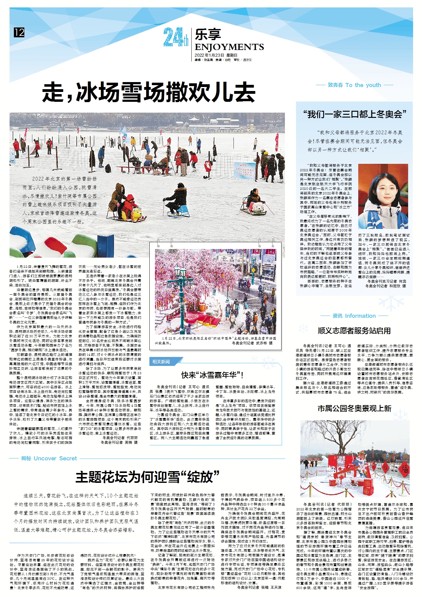 1月22日,顺义区空港街道祥云小镇冬奥城市志愿者服务站正式启用。身穿蓝色志愿者服装的青年志愿者分工合作,为祥云小镇的游客和路过的外卖小哥发放冬奥宣传册,同时开展周边环境清扫工作。