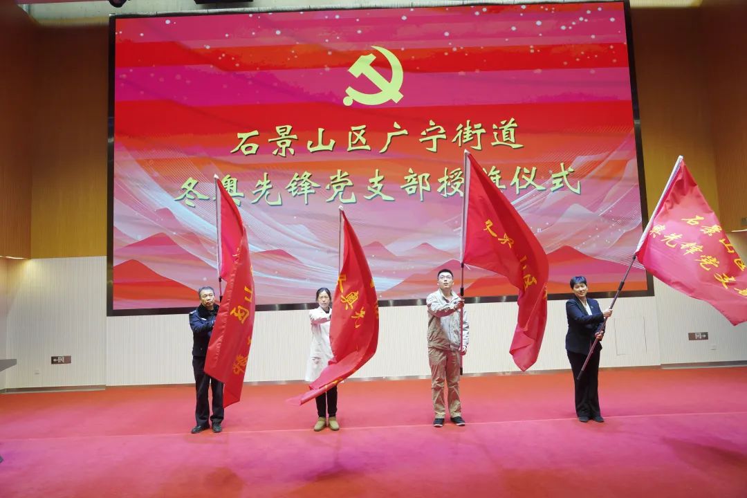1月11日,北京石景山区首批“冬奥先锋党支部”授旗仪式在冬奥社区举行。冬奥社区的党员志愿者接过鲜红的志愿队旗,奔赴服务保障冬奥第一线。