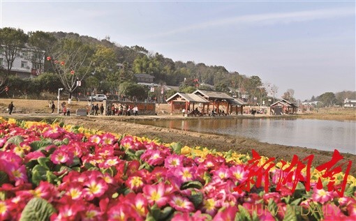 (1月19日,益阳市谢林港镇清溪村,游客在文化主题公园游玩。湖南日报全媒体记者 徐行 郭立亮 摄影报道)