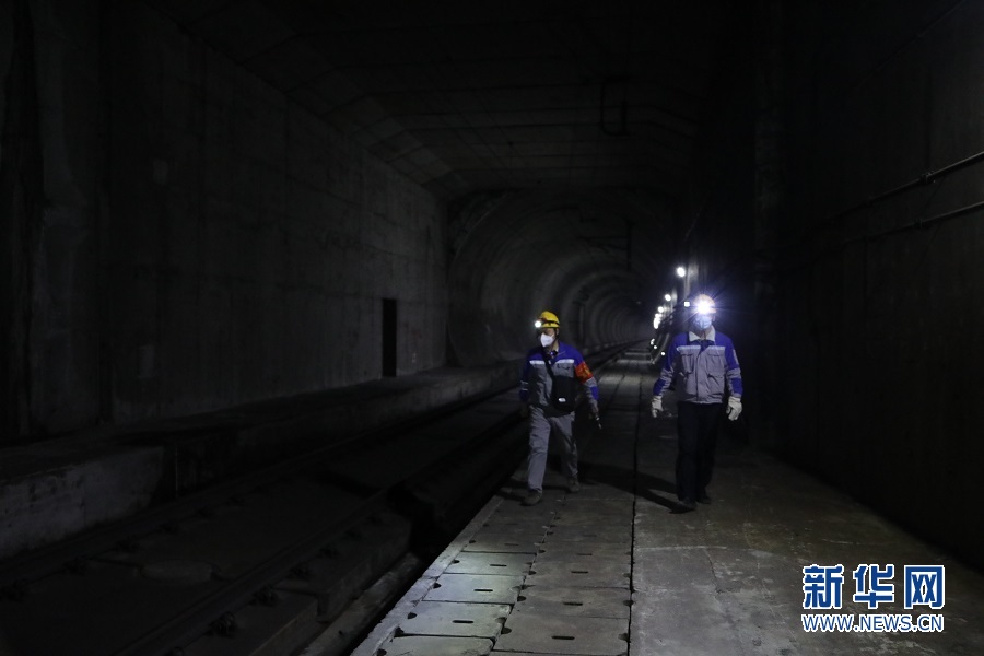 广州高铁工务段职工王叶(左)今年28岁,在广深港高铁狮子洋海底隧道已经坚守8年了。他和同事们的工作是对隧道进行日常的检查及保养工作。新华网 王佳 陈雪莹/文 伍嘉炜/图