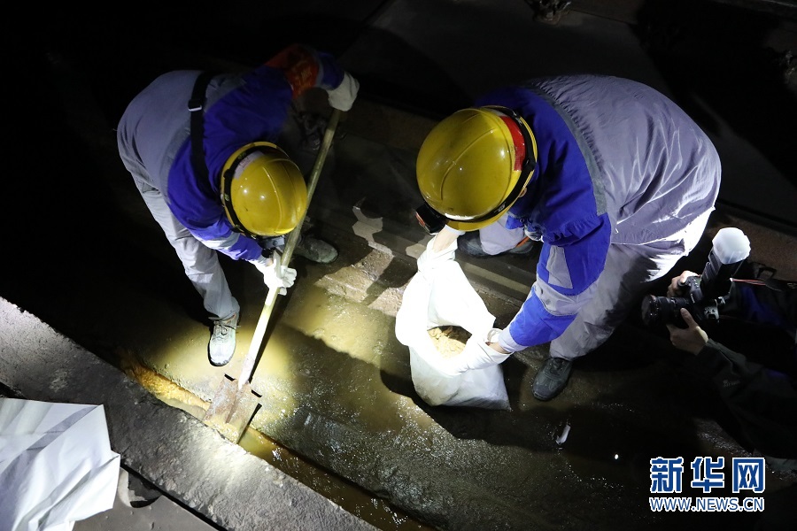 海底隧道常有海水渗透而导致淤泥堆积现象的发生。“守隧人”需要经常进行清理,否则将无法正常抽排水,从而影响列车运行。新华网 王佳 陈雪莹/文 伍嘉炜/图