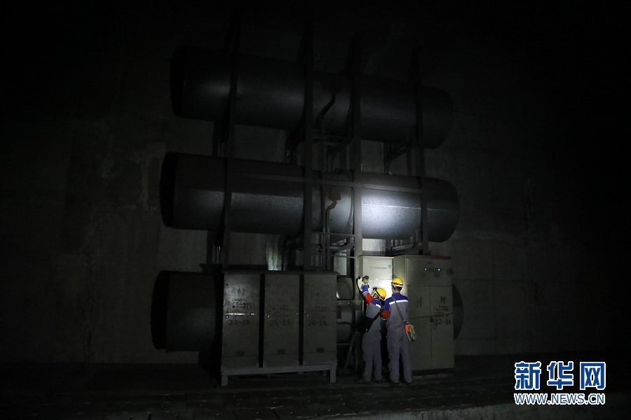 王叶对江中泵房抽排水及高压细水雾设备检查。新华网 王佳 陈雪莹/文 伍嘉炜/图