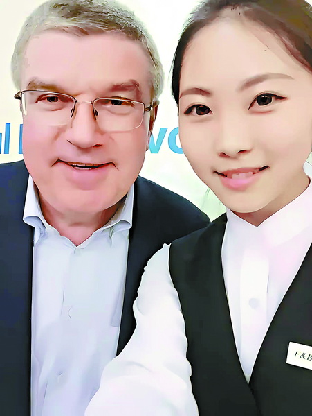 第一次做志愿者就能够参与到2022年冬奥会筹备工作,赵晓敏既兴奋又紧张。“心里想着千万不能出错,紧张得手心直冒汗。巴赫先生特别亲切,脸上一直洋溢着灿烂的笑容,就好像回到了自己家一样。”赵晓敏回忆说。“就餐结束后,巴赫先生提出和所有工作人员合影。合影时我很幸运站在了他的身边。”赵晓敏说,她很想和巴赫先生单独合影,但是志愿服务工作有严格要求,她手里拿着手机又不敢拍照,手机拿起又放下。“正当我手足无措的时候,没想到巴赫先生看出了我的心思,主动示意我可以拍照。于是,我就赶紧拿起手机和他自拍了一张。”赵晓敏说,拍照结束后,巴赫先生与每位工作人员握手道别,并表示“Hope to see you again in 2022”。