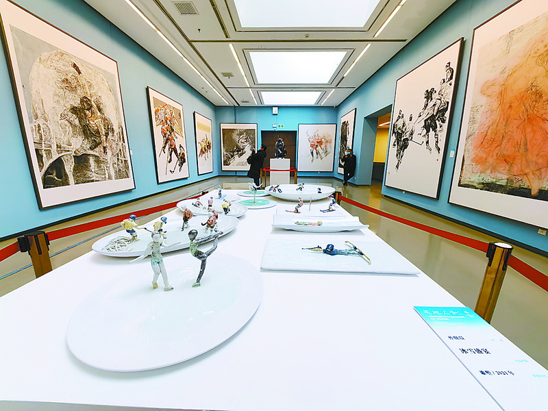 描绘短道速滑精彩瞬间的中国画《速度与激情》,定格运动员“飞”在最高点的雕塑《风雪飞驰——单板滑雪》……1月21日,“天地人和——中国国家画院北京冬奥主题创作作品展”在中国国家画院美术馆开幕。展览展出画院艺术家新创作的201件冬奥主题作品,为北京冬奥助力。