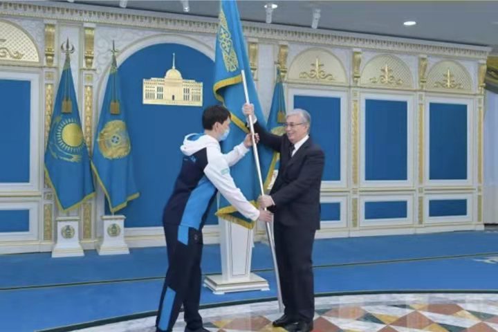 北京日报客户端记者从哈萨克斯坦驻华使馆获悉,哈萨克斯坦总统托卡耶夫日前在总统府接见了北京冬奥会哈萨克斯坦代表团成员,并向代表团授予哈萨克斯坦国旗。