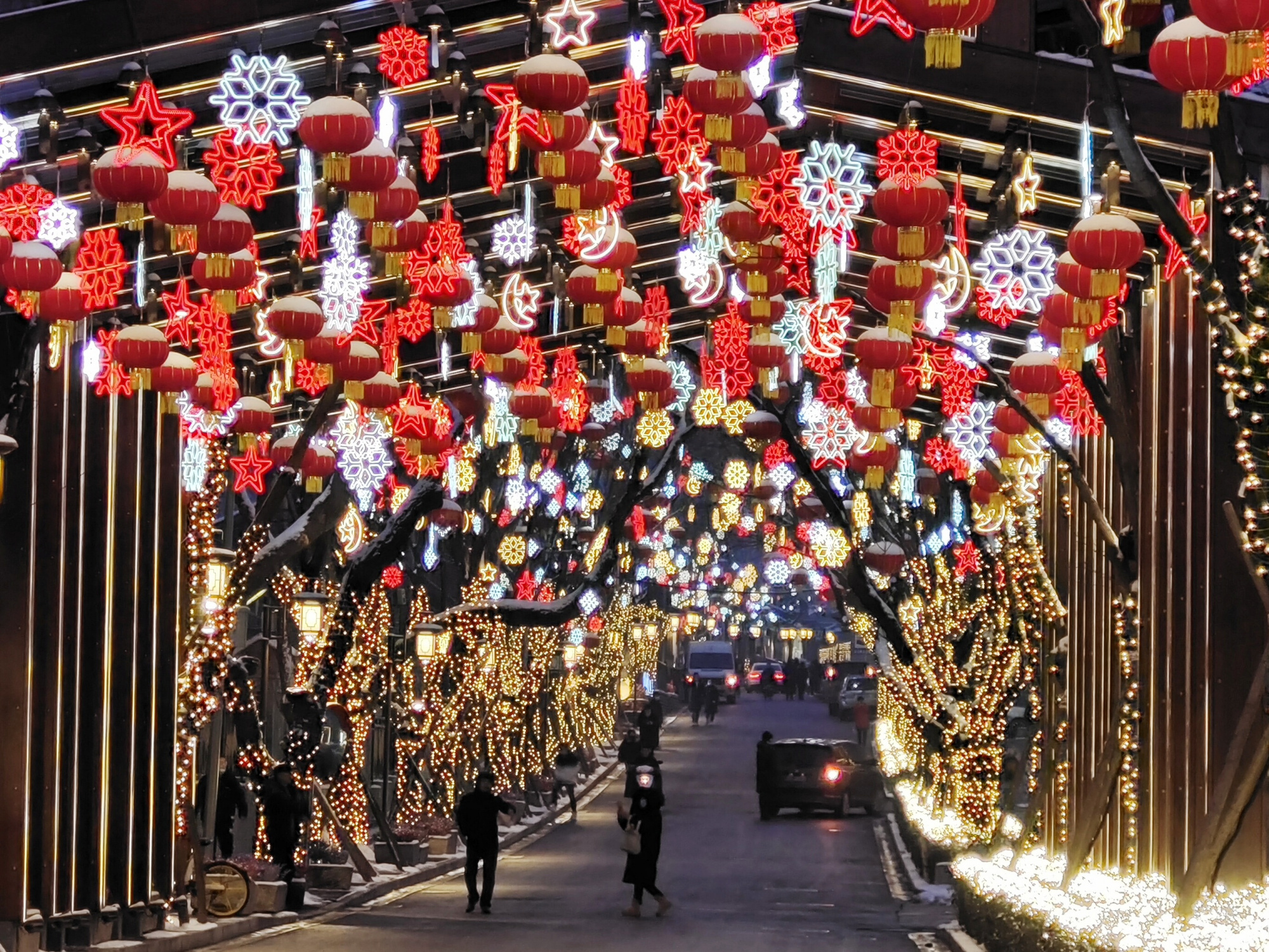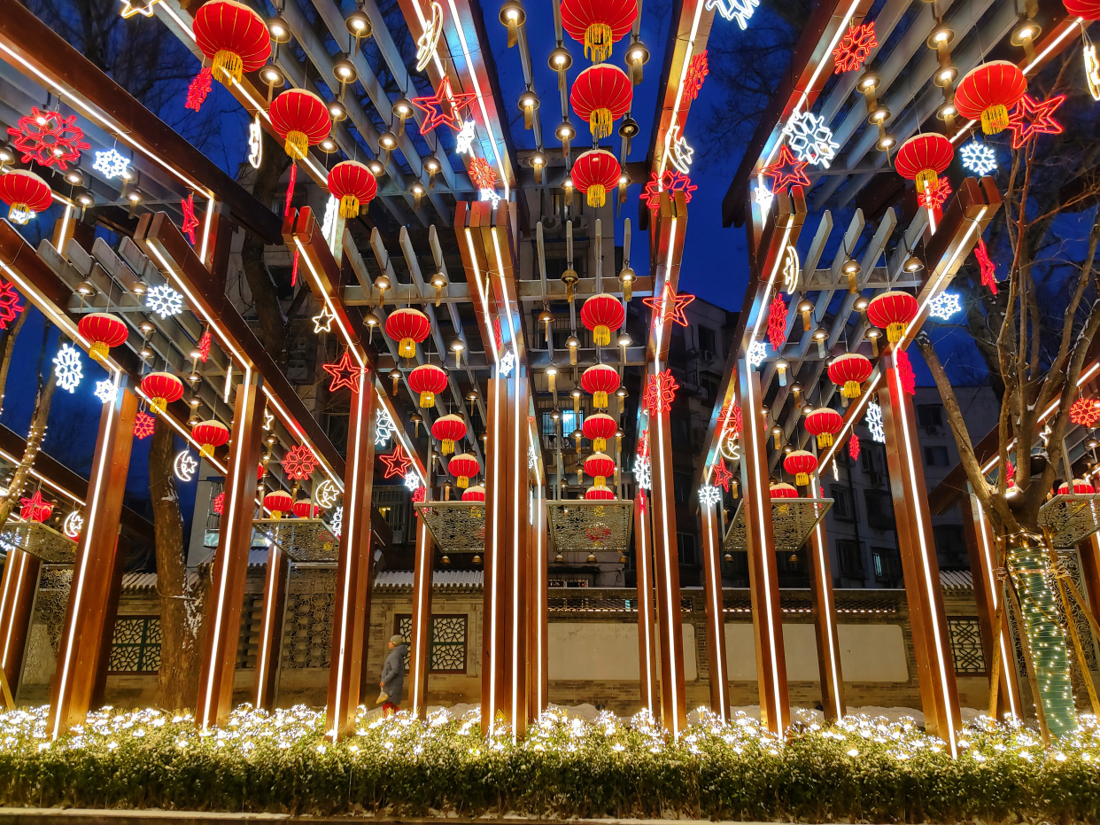 新年的脚步慢慢临近了,夜幕降临,石景山灯光璀璨,高高挂起的红灯笼,与飘飞的雪花交织在一起,点亮了大街小巷,仿若天上的街市,准备迎接新年的到来!