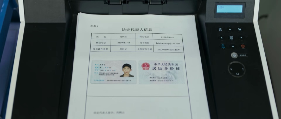 尴尬的是,这个打印机上一秒打印的是一张《法定代表人信息》表,这是《公司登记(备案)申请书》的附表……