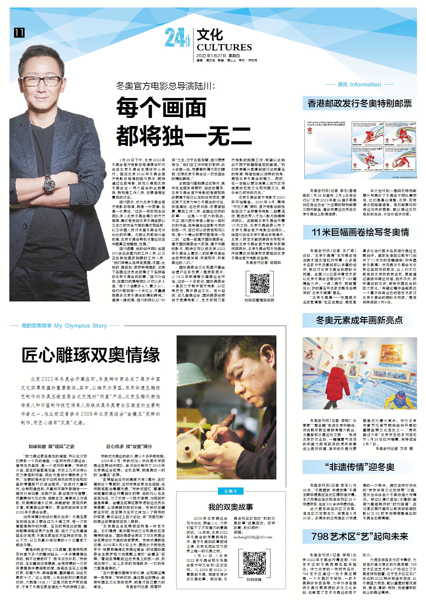 国际奥委会文化和遗产基金会遗产业务负责人雅思敏表示,从1912年斯德哥尔摩奥运会开始,过去一个多世纪,国际奥委会一直致力于制作官方电影,以记录历史、展示奥运文化。她介绍说,近几届奥运会,国际奥委会倾向于邀请电影人、艺术家捉刀官方电影的拍摄工作,希望以此拍出不同于转播商呈现的画面。“我们非常高兴邀请到陆川这样著名的导演,相信他能以独特的视角,展现北京冬奥会的魅力。同时,也一定能以更加有意义的方式传递奥林匹克文化和中国文化,展示举办城市的风采。”