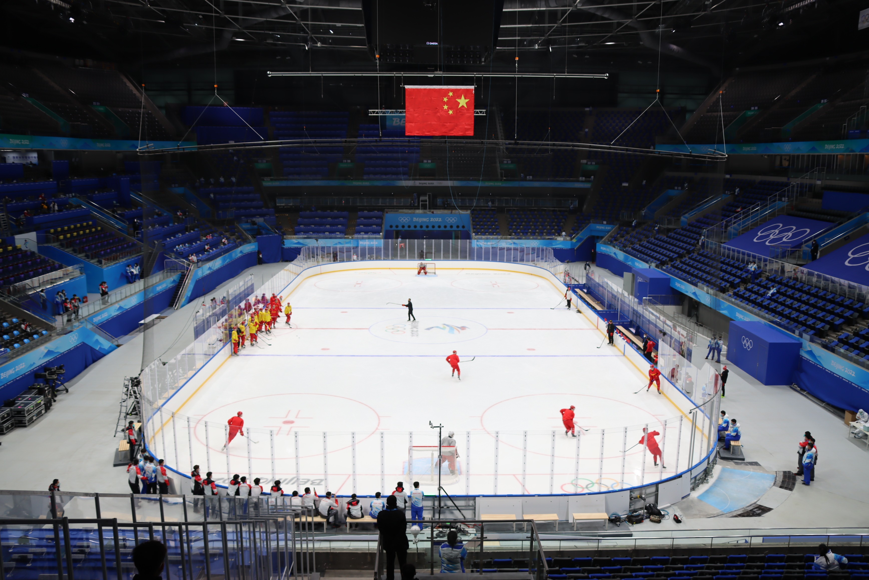 1月28日,中国男子冰球队在国家体育馆进行了进入冬奥闭环后的首堂训练课,这是国家体育馆在23日开启冬奥闭环管理以及制冰结束后进行的首次“实战”。据国家体育馆媒体运行经理孙睿璇介绍,随着首场运动员训练课开始,场馆媒体中心正式开放,国家体育馆正式进入冬奥赛时状态。