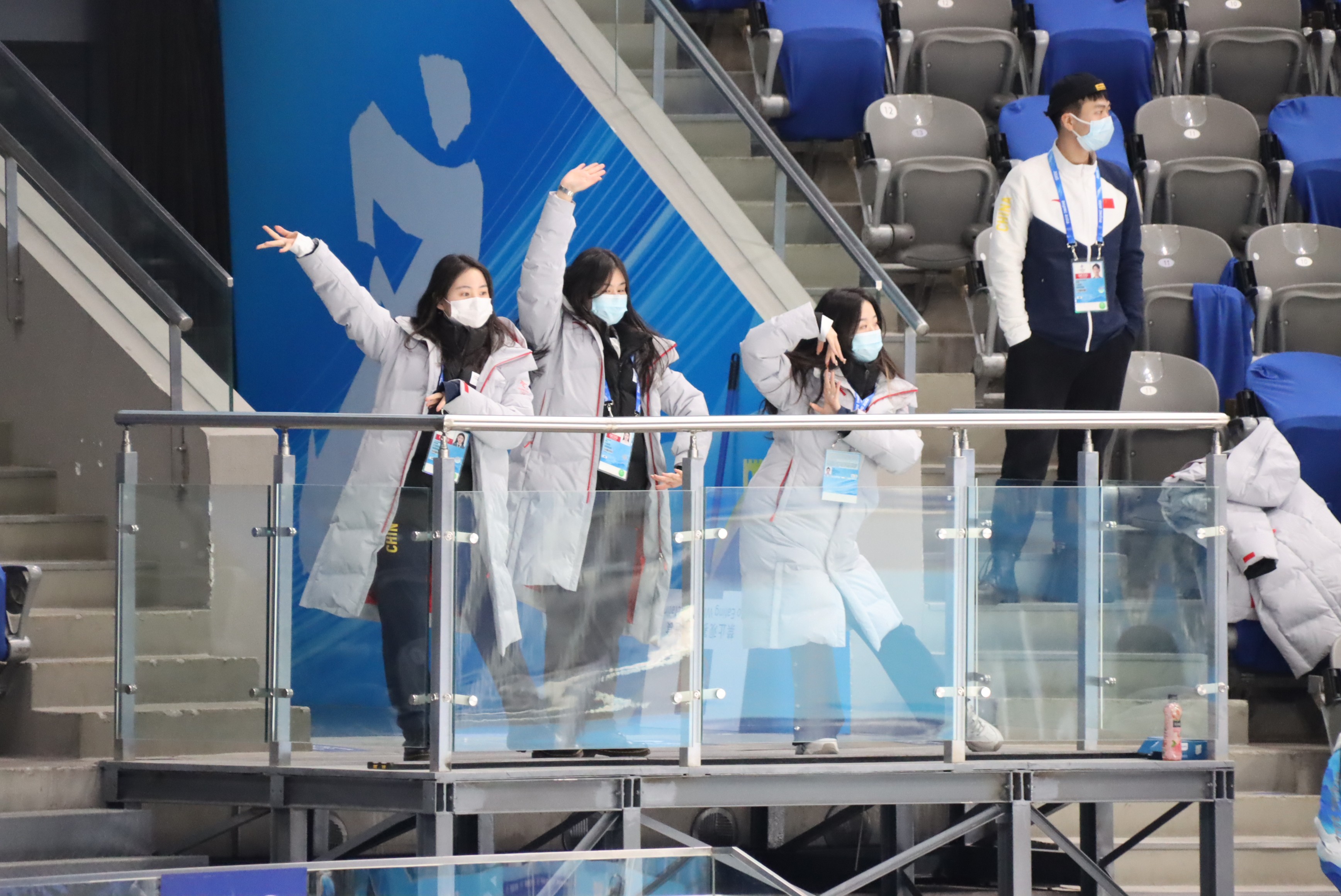 在比赛正式开始前,国家体育馆运行团队仍然抓紧一切机会进行演练。28日下午,场馆体育展示团队就进行了一场演出排练。工作人员在动感的音乐和绚烂的灯光配合下翩翩起舞。据悉,这是场馆体育展示团队在冬奥会比赛的赛前、暂停期间、中场休息、赛后,为烘托现场氛围精心编排的表演。