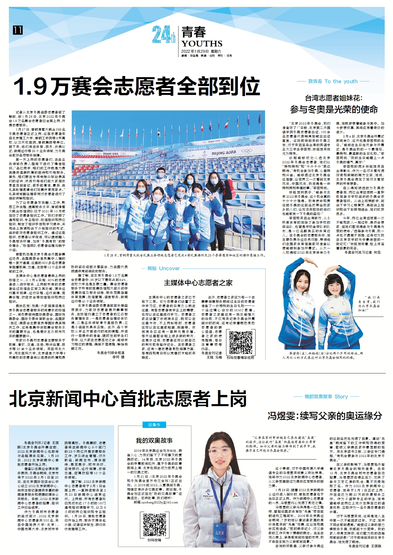 这个寒假,对于中国传媒大学德语专业的冯煜雯来说意义非比寻常。她将作为2022北京新闻中心志愿者,从父亲那里接过为奥林匹克服务的接力棒。