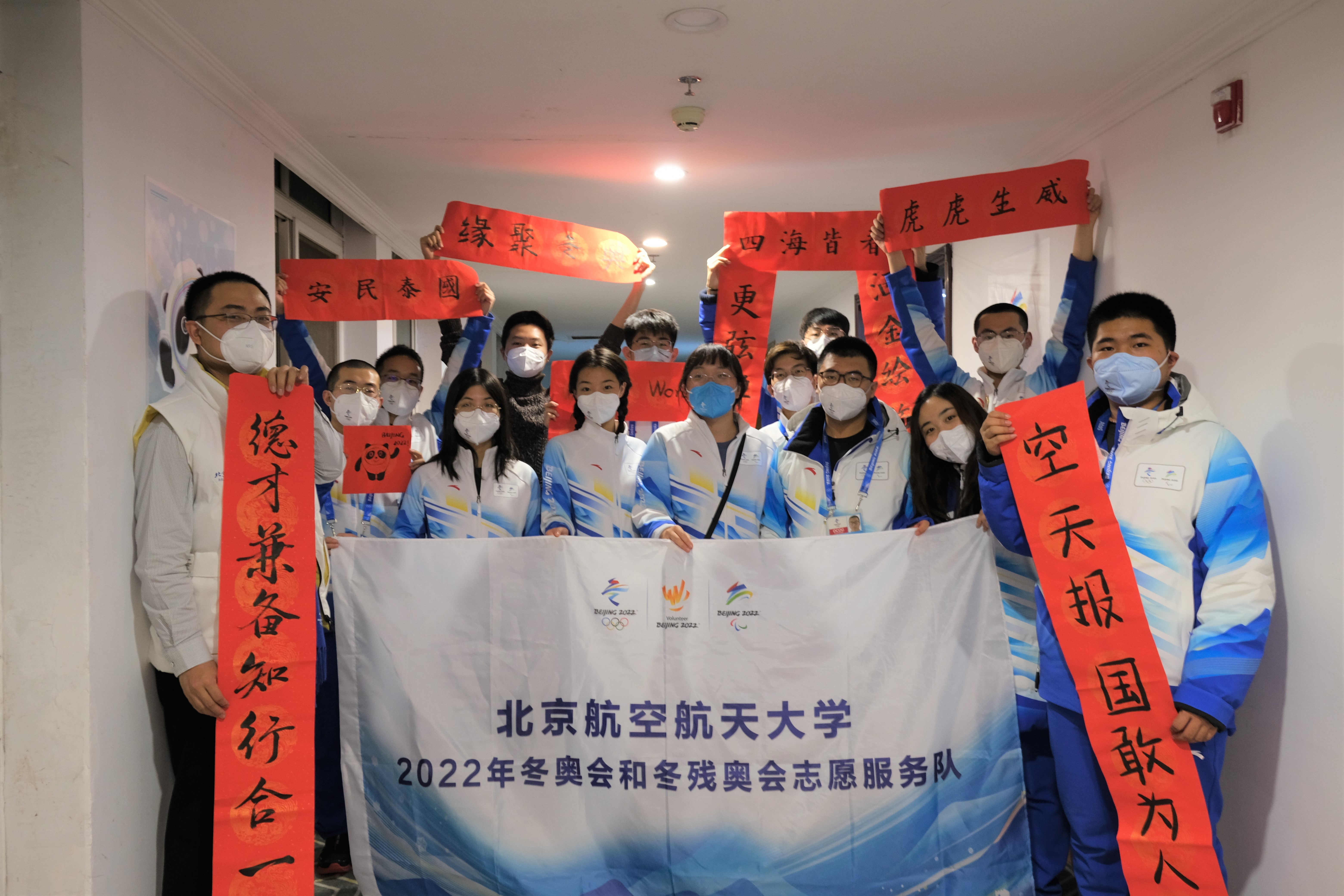 “严谨勤奋求实创新,自强不息厚德载物。”“德才兼备知行合一,空天报国敢为人先。”在志愿者驻地,来自清华大学、北京航空航天大学等高校的志愿者也创作了各具特色的春联,表达青年学子对虎年的美好期盼。