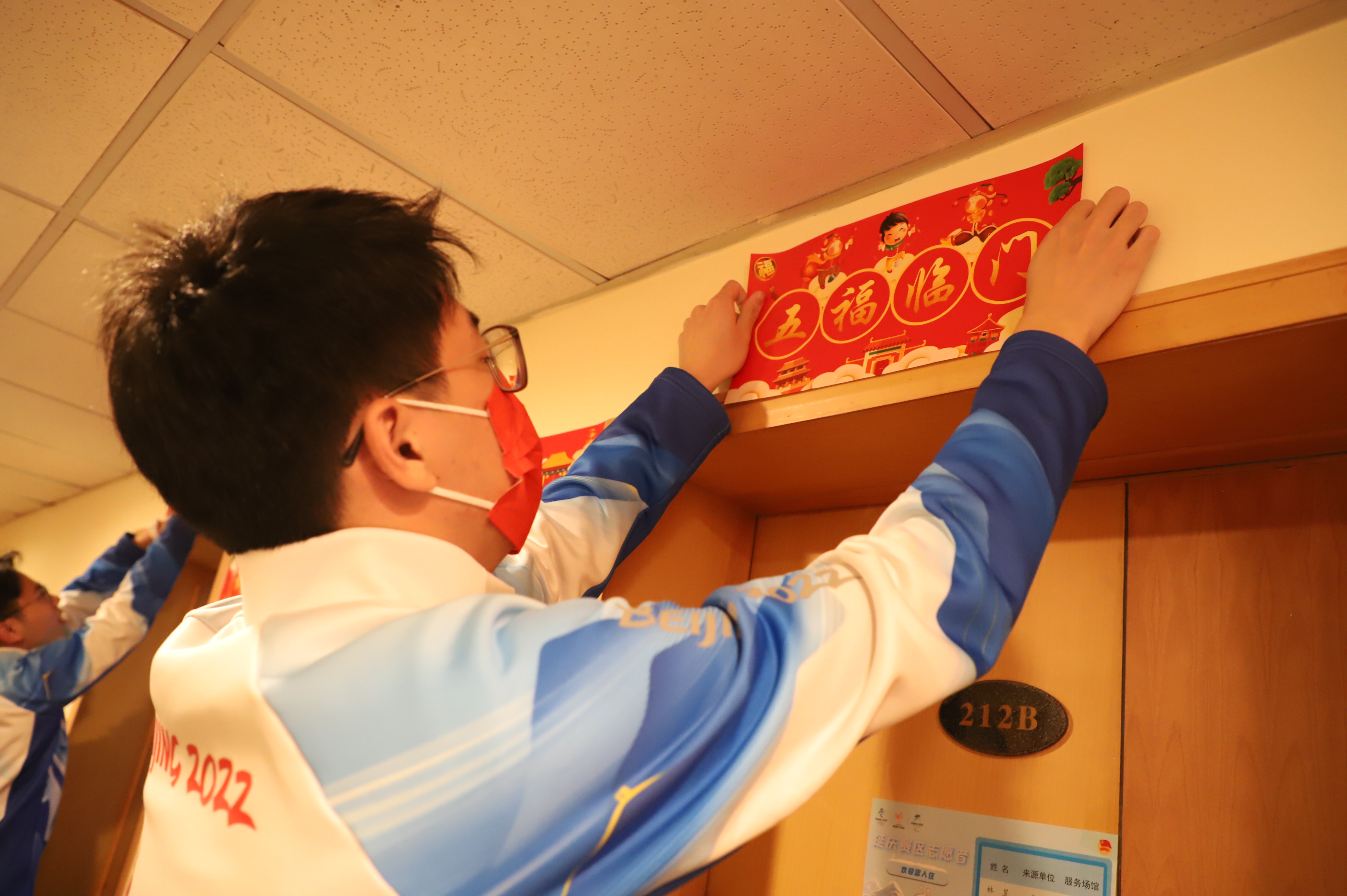 “冰雪风采中国梦,健儿英姿时代盛。”“严谨勤奋求实创新,自强不息厚德载物。”春节将至,一幅幅春联让延庆赛区志愿者驻地洋溢着喜庆的气息。来自首都各高校的冬奥志愿者们贴起了春联、挂起了红灯笼,迎接春节和冬奥的到来。
