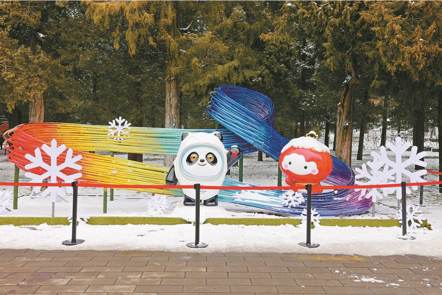 为了迎接即将开幕的北京冬奥会,公园还布置了特色展陈。西门内广场设有主题为《筑梦冰雪 相约冬奥》的景观小品,以吉祥物“冰墩墩”“雪容融”和国家速滑馆“冰丝带”为设计元素,打造以五彩飘带贯穿全景的地景艺术。公园游览主路上的东西大墙文化长廊正在展出《“迎冬奥”奥运文化主题系列展览》,展览涵盖了冬奥历史、冬奥吉祥物、北京冬奥赛区等内容,烘托浓厚的迎冬奥氛围。