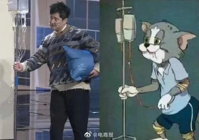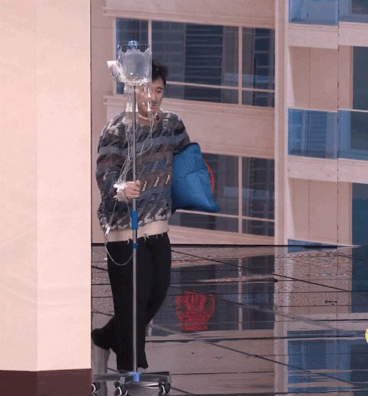 拎着输液瓶装病的画面做成了表情包