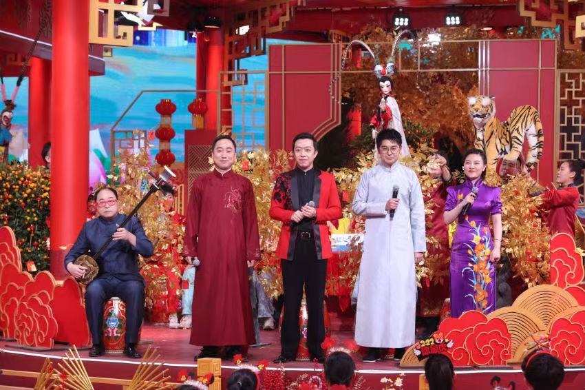 综合秀《大戏看北京》是北京卫视春晚的重点节目之一,也是众多节目中非常独特的一个。所谓综合是指这其中,有民歌的唱,还有带着戏味儿的唱,更有让人眼花缭乱的炫技表演。演唱歌曲的既有歌唱演员王二妮、杜朋朋、冯金伟,还有话剧演员闫锐、张可盈,京剧演员白金、郭玮、昆曲演员邵天帅、魏春荣,更有评剧演员王平、于海泉,河北梆子演员王英会、张四刚,曲艺演员李菁、张天雷等人,每个人的演唱都只有一两句词儿,可是也能听出他们所从事的剧种的特色。除了唱,舞台上还能看到杂技、戏曲、木偶剧、儿童剧的精彩呈现,高难度的技巧让人眼前一亮。