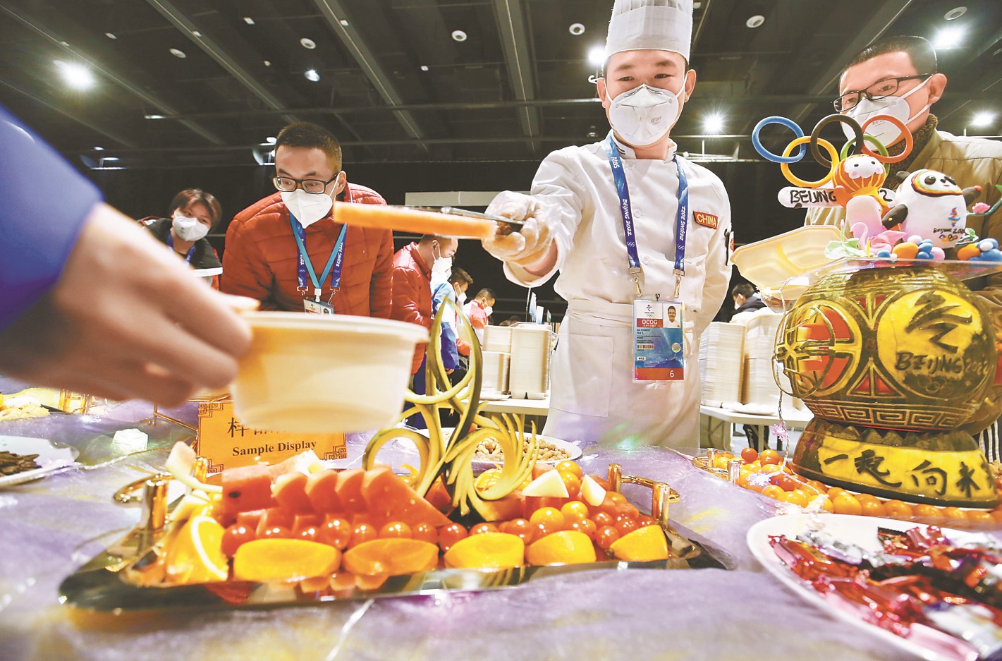 五棵松体育中心为客人们提供了丰富的餐饮选择,很多造型设计兼具冬奥与中国元素。