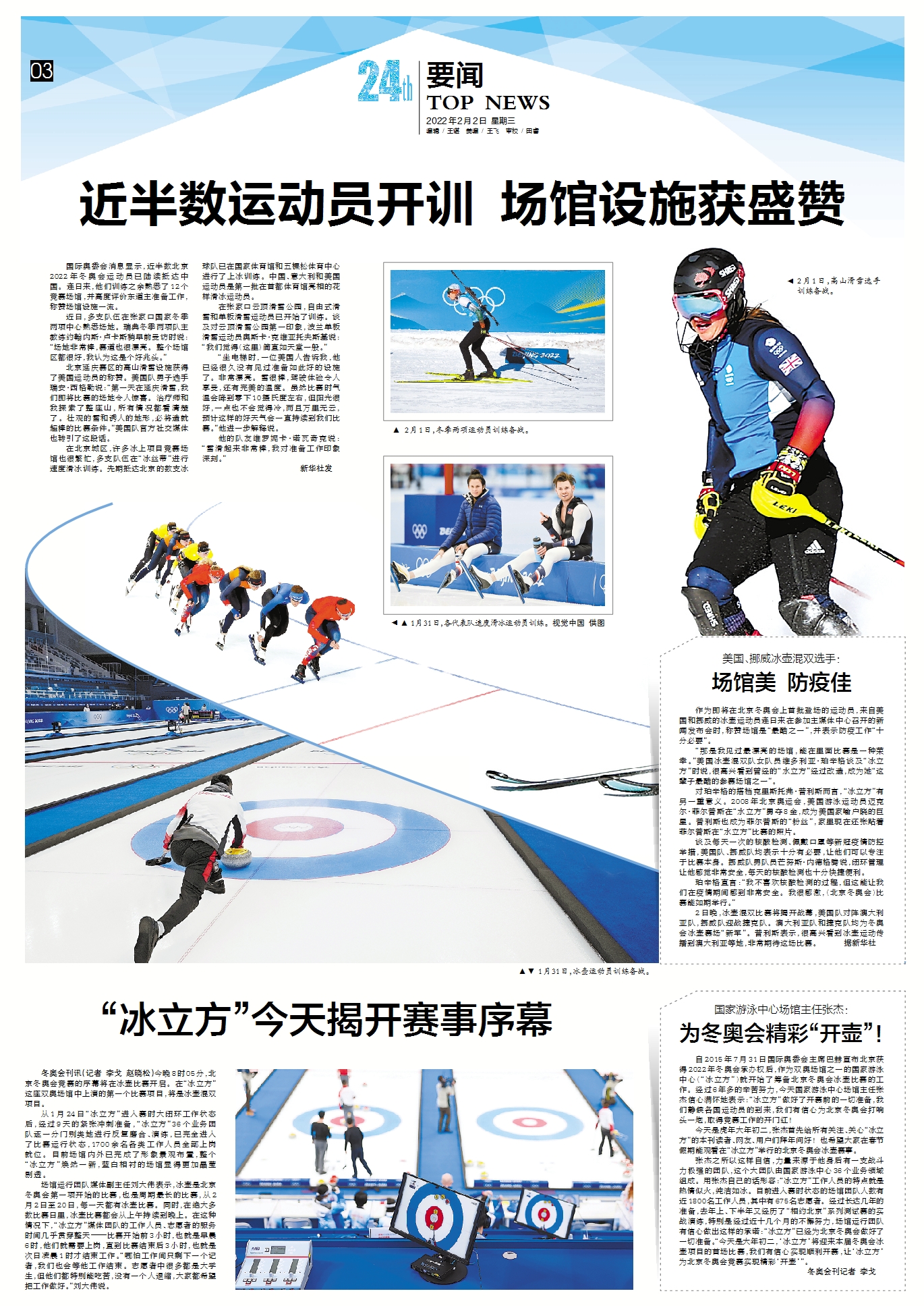 今天是虎年大年初二,张杰首先给所有关注、关心“冰立方”的本刊读者、网友、用户们拜年问好!也希望大家在春节假期能观看在“冰立方”举行的北京冬奥会冰壶赛事。