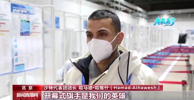 沙特代表团团长 哈马德•哈维什:开幕式旗手是我们的英雄,他将挥舞旗帜跟其他国家和地区的运动员一道,走入开幕现场。开幕式将是特别重要的时刻,我敢肯定,我也充满信心,我们能见证一场无与伦比的开幕式。我们已准备就绪,期待开幕时刻。