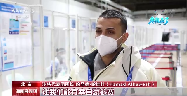 沙特代表团团长 哈马德•哈维什:非常自豪、非常荣幸能参加由北京举办的备受瞩目的冬奥盛会。感谢你们的热情好客,我们一下飞机就感受到了你们筹备赛事是在新冠肺炎疫情下的艰难时期,但是你们化不可能为可能,让我们能有幸自豪地参赛。