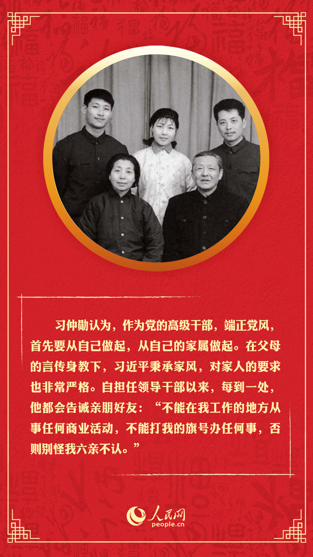 “千家万户都好,国家才能好,民族才能好。”在中国传统文化中,“家国天下”的情怀浸入每一个中国人的骨髓血脉。家庭是社会的基本细胞,是人生的第一所学校。正是这个课堂,塑造了习近平的家国情怀,也成为他修身齐家治国理政的信念源泉。新春佳节,一起回顾习近平的家风故事,学习以家风涵养初心使命。