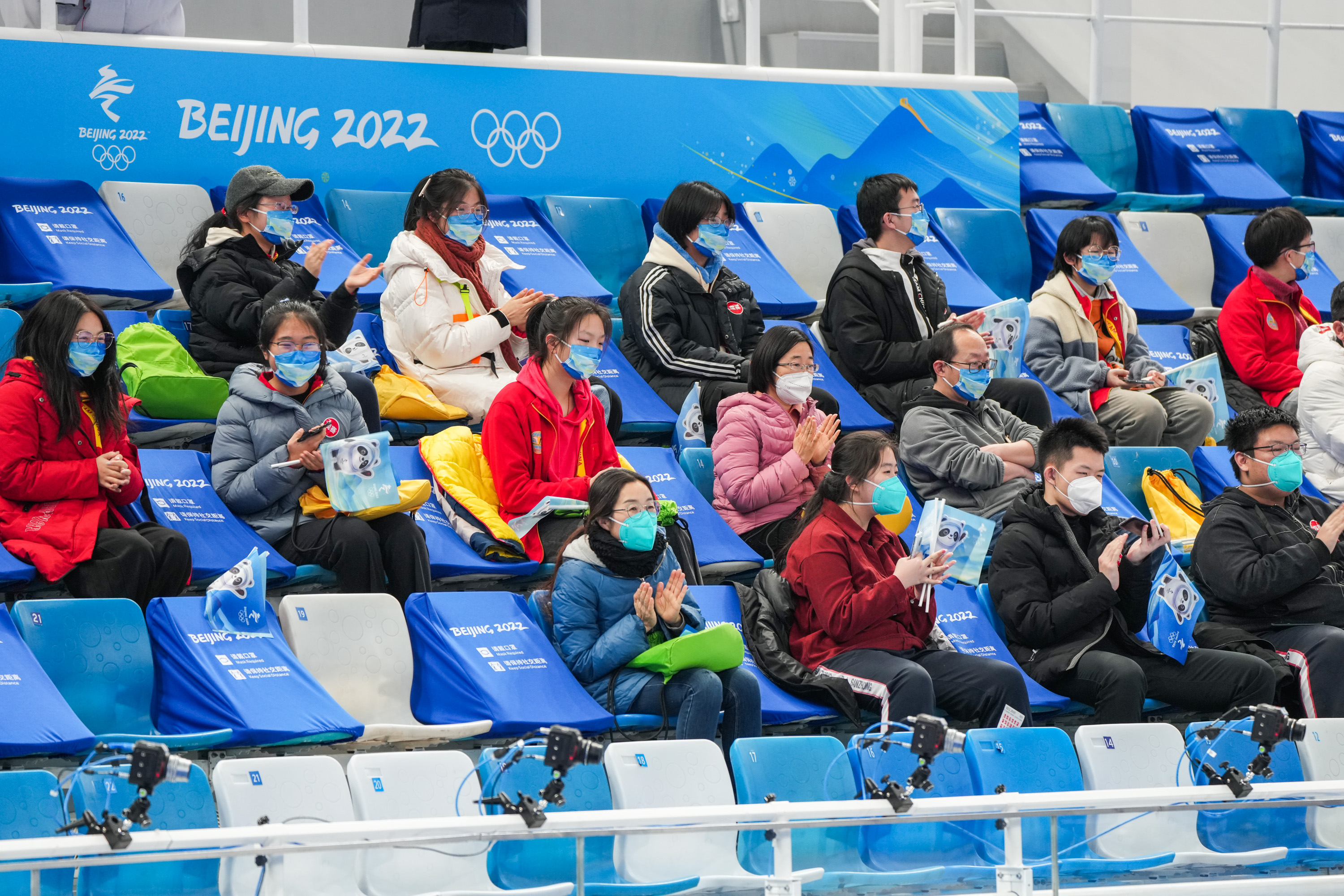 2月2日晚,北京冬奥会冰壶比赛在“冰立方”率先开赛。通过直播镜头,观众席上五环色系的口罩让人忍不住多看一眼。记者从承担北京冬奥会比赛场馆观众口罩生产任务的北京纳通科技集团获悉,这些口罩是票务与观众组织组给观众专门配备的特制医用防护N95口罩,有个好听的名字——“韵律山丘”。
