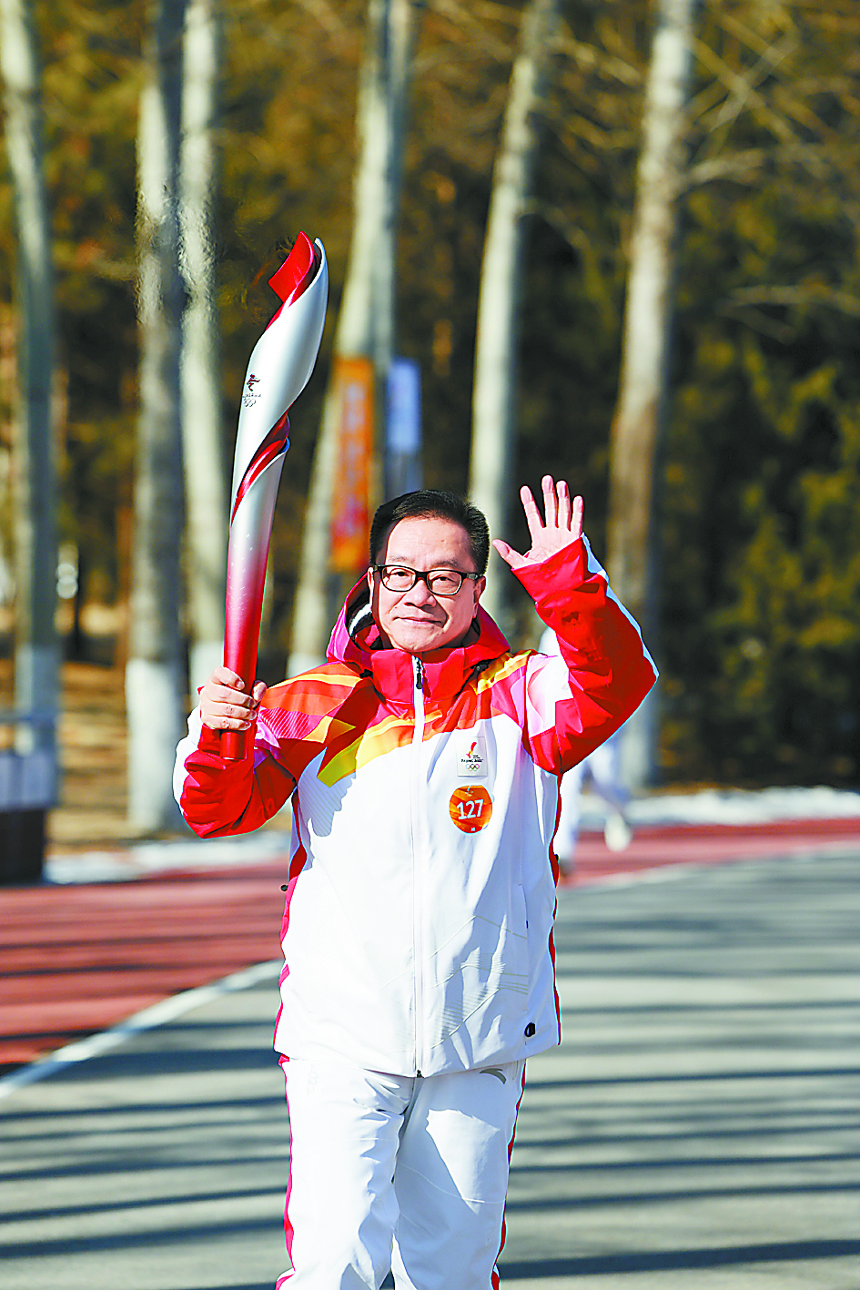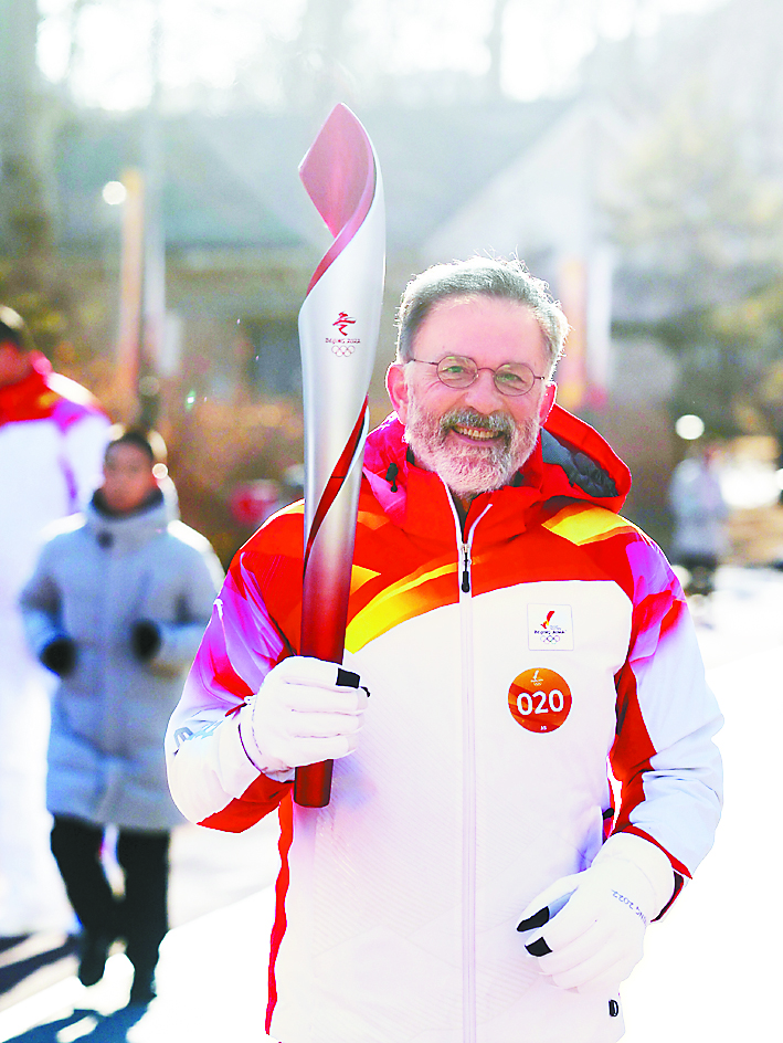作为奥林匹克森林公园第20棒火炬手,希腊驻华大使乔治·伊利奥普洛斯参加北京2022年冬奥会火炬接力。