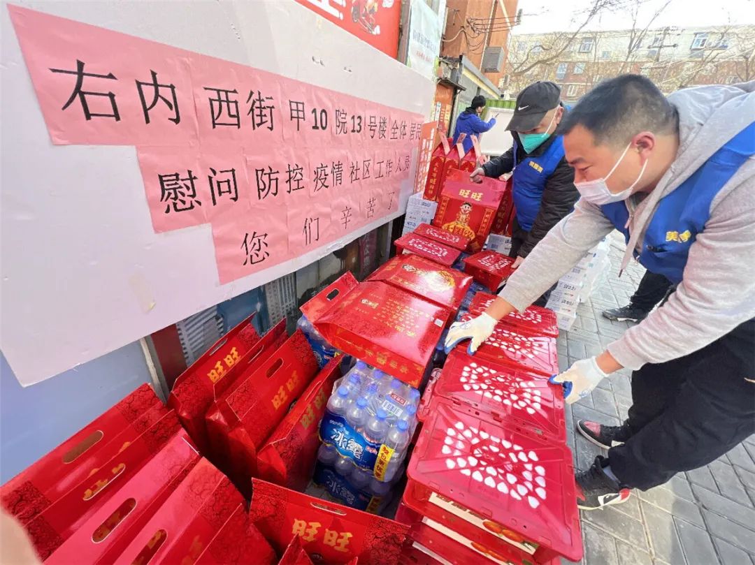 1月29日是西城区右内西街社区因为疫情实施临时封控管理的第5天。上午十点半,美廉美白纸坊店的两辆轿车开到社区服务站。后备厢打开,“大白”们麻利地将封控区居民送给他们的牛奶、过年礼包、砂糖橘、矿泉水、抽纸等搬了下来。