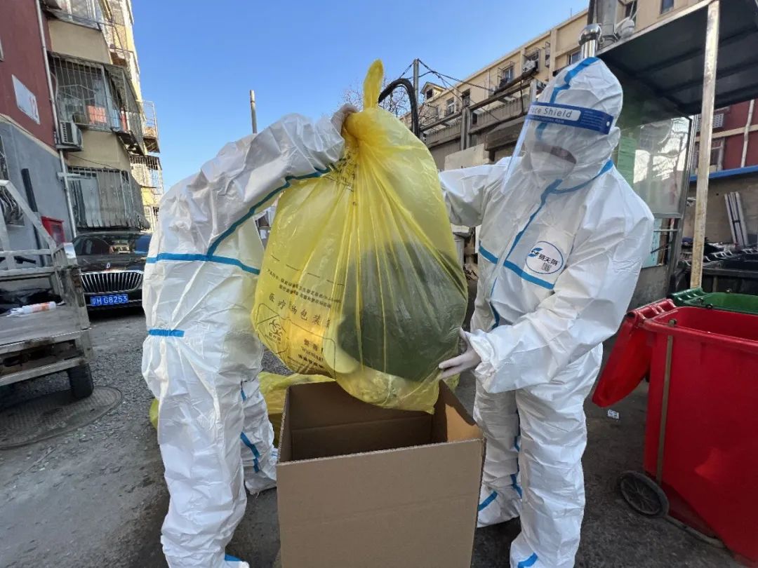 在日常管控过程中,街道设立了楼栋巡查岗,按实名制两班轮岗,确保管控区人员减少下楼、不聚集,封控区内区域封闭、足不出户、服务上门。在对封控区居民进行健康状况巡查跟踪的同时,社区也会安排专人对管控区居民进行提醒,如佩戴口罩,减少下楼次数等。对于封控区的垃圾收运,按照隔离人员定点放置,工作人员每日一次上门收运,并进行双层袋包装,两次消毒后,装箱集中清运。对于管控区的垃圾清运,则安排每天定时定点集中投放。
