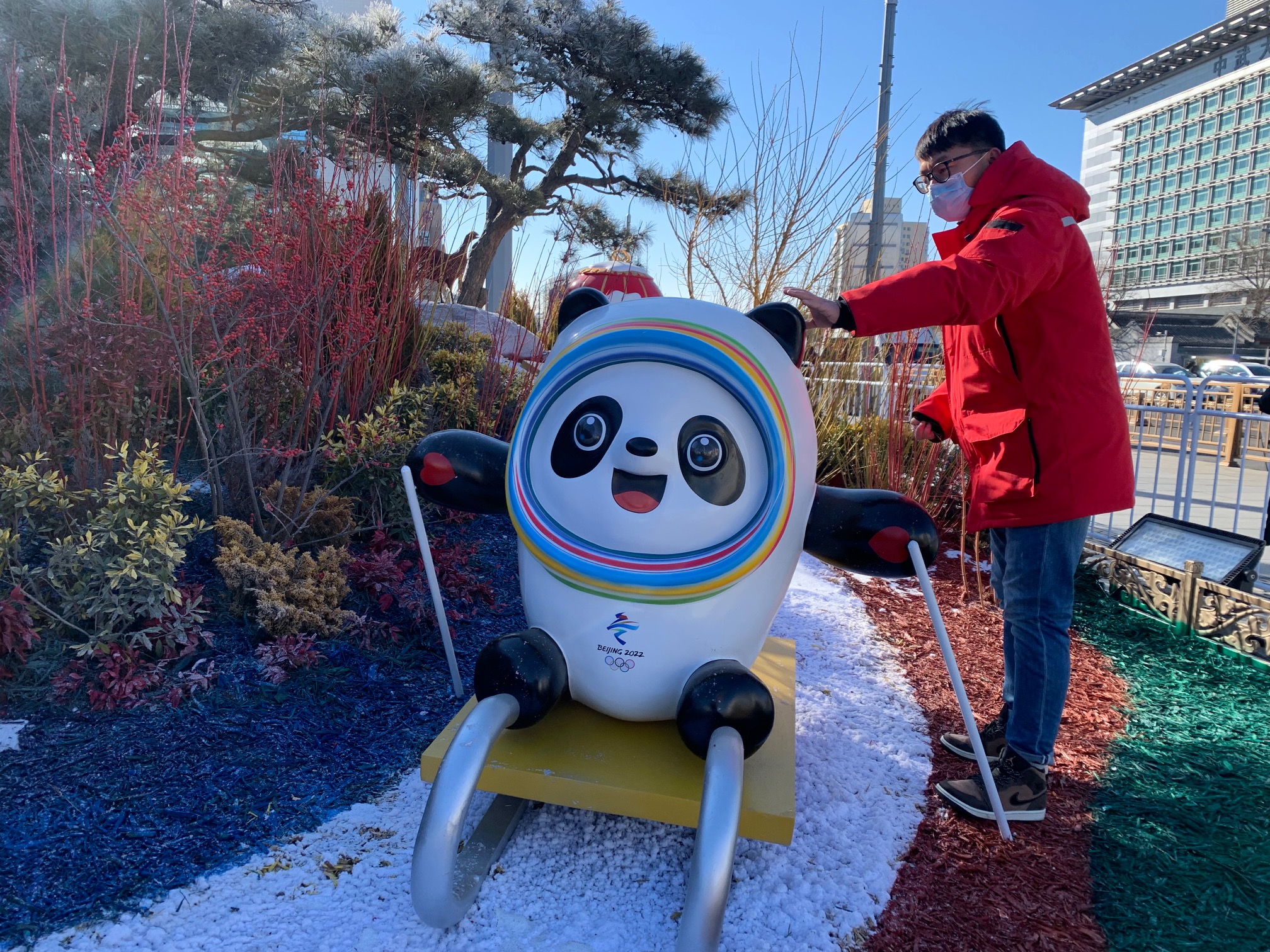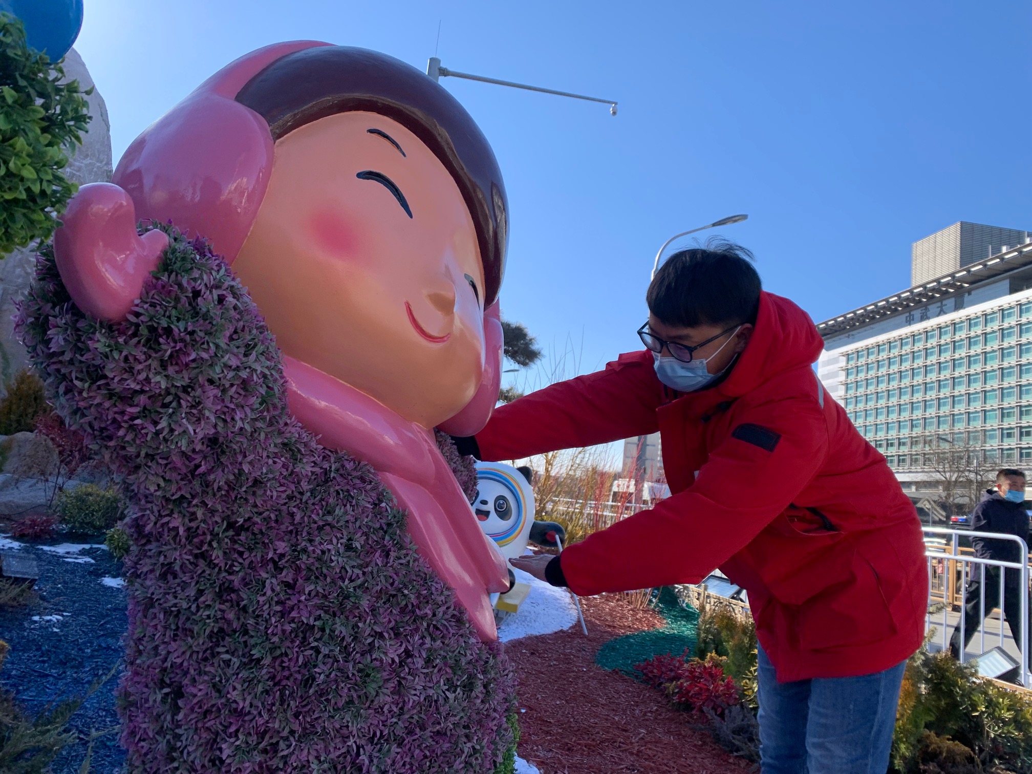 作为十大冬奥主题花坛之一,2021年11月,位于西单东南角的“冰天雪地”花坛开始搭建,来自北京城建园林花木公司的张超,成了花坛的现场负责人。