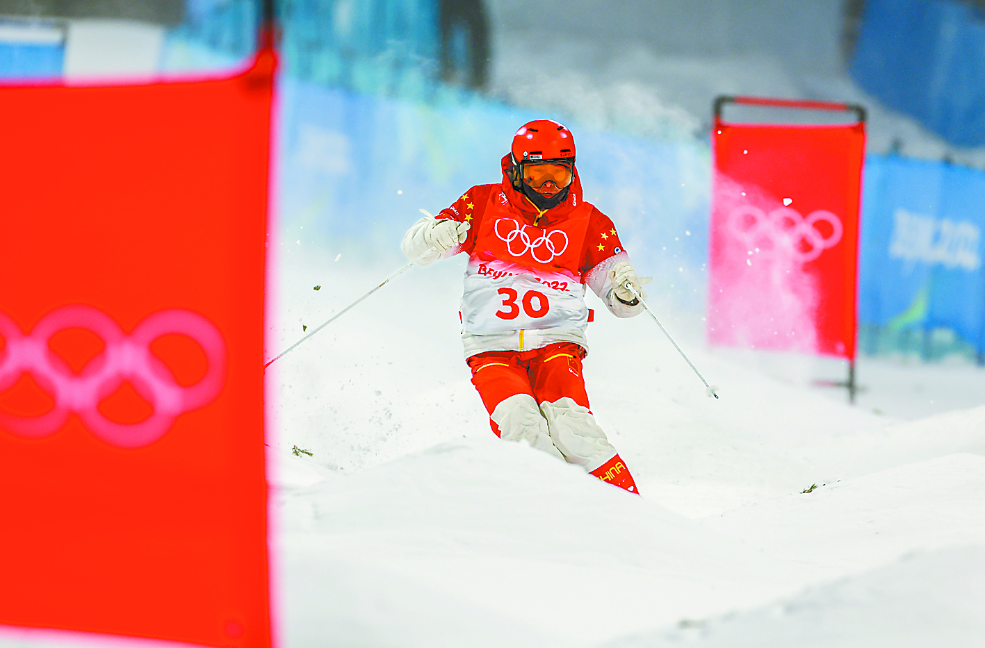 作为首位参加冬奥会自由式滑雪雪上技巧项目的中国男选手,赵洋顺利完赛。