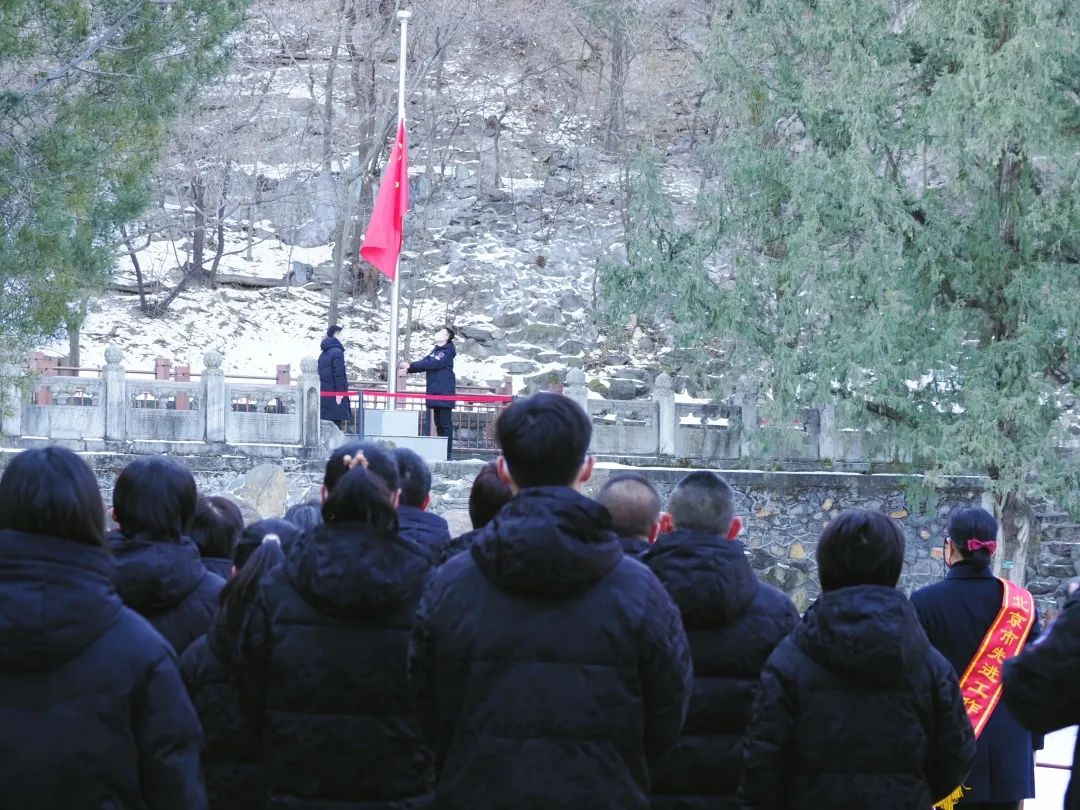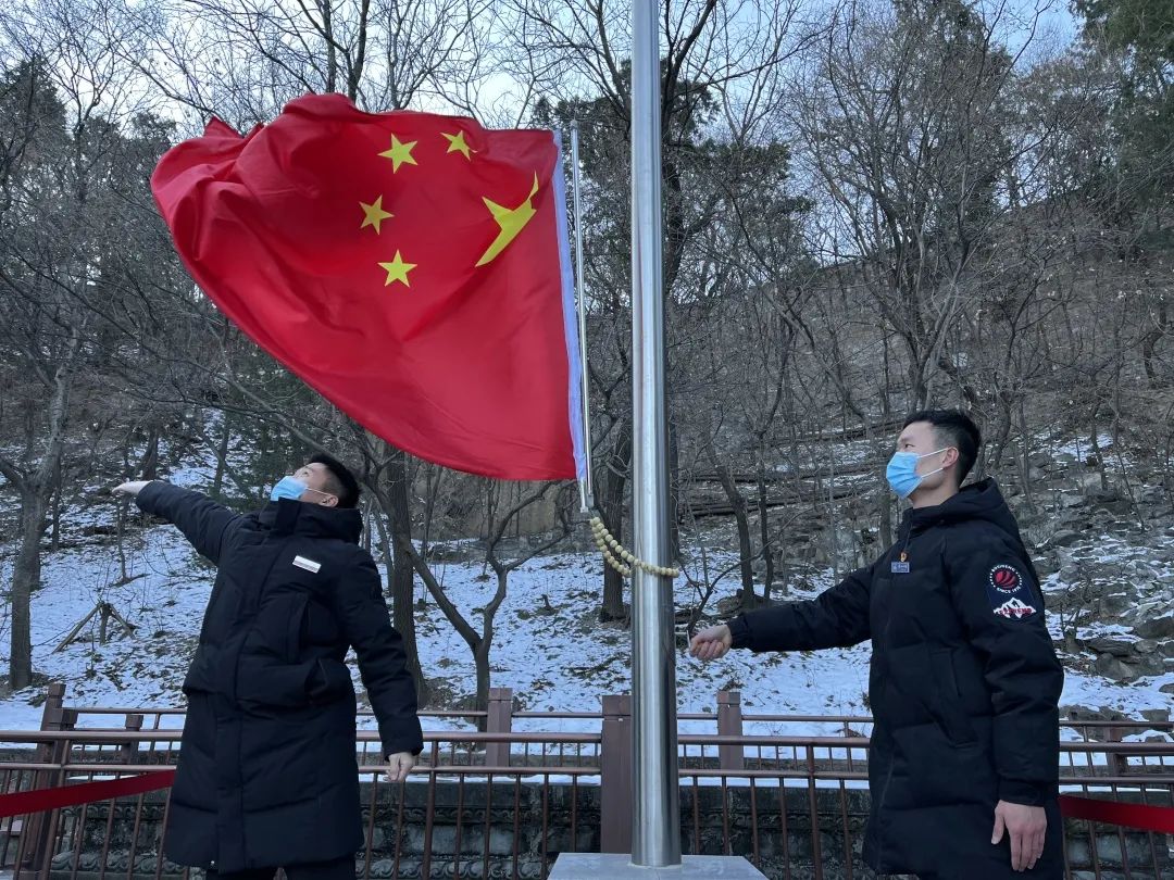 2月1日,香山公园在双清别墅举办“红旗飘扬 祝福祖国”升国旗仪式。