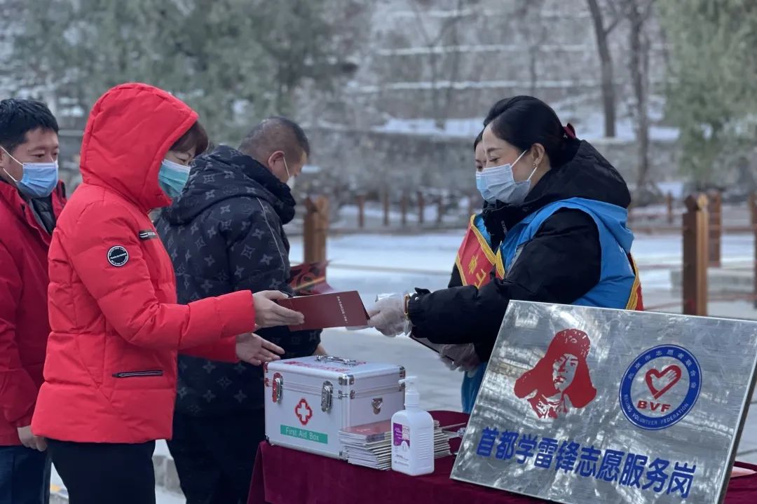 香山革命纪念地(旧址)面向游客发放宣传折页,游客可根据折页上的地图,前往八处旧址参观,并集章打卡,彰显节日游园氛围。