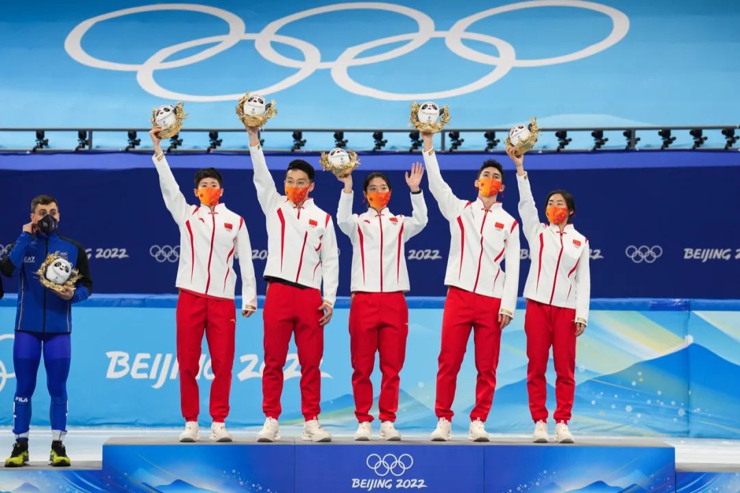 △北京冬奥会短道速滑混合团体接力决赛,武大靖(左一)。