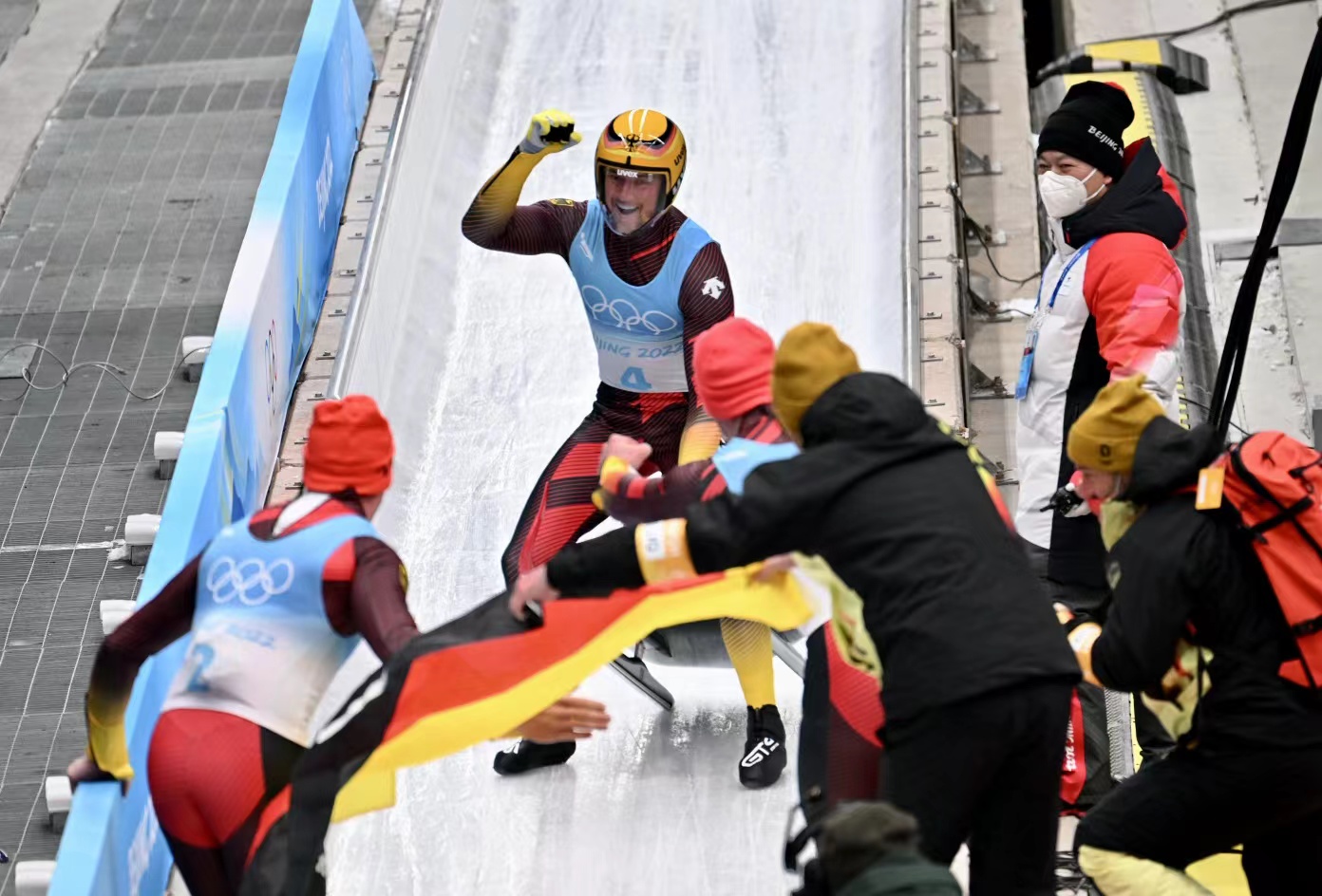 值得一提的是,由于当天上午在高山滑雪中心举行的男子速降项目延期,这块雪橇男单金牌也成为延庆赛区首金。