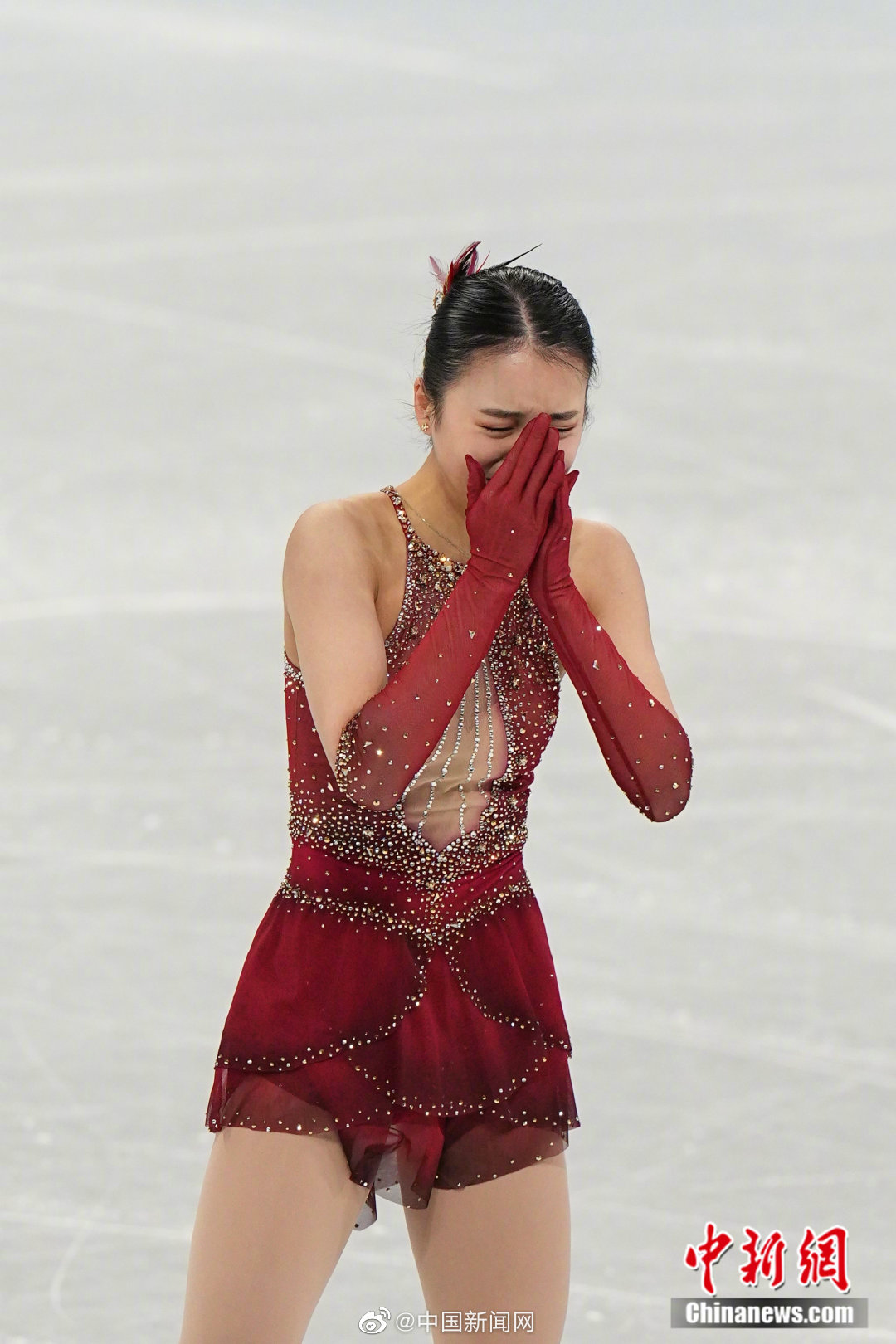 代表中国队出战北京冬奥会花样滑冰团体赛的女单选手朱易,7日身着红裙,在自由滑得到91.41分。