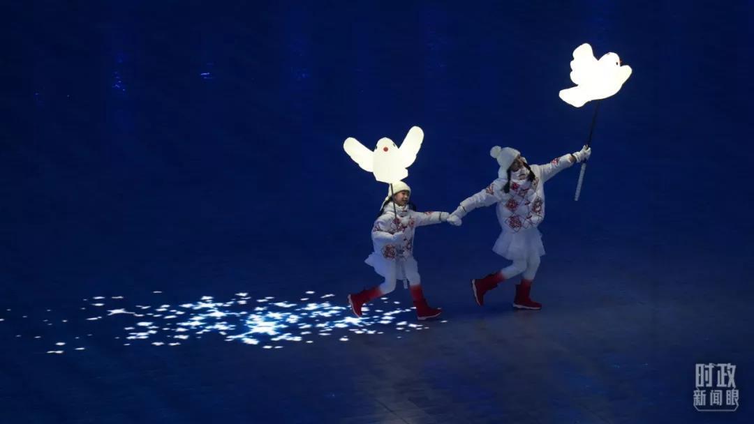 △北京冬奥会开幕式上,“找回掉队的小鸽子”情节让网友大呼感动破防。(总台国广记者李晋拍摄)