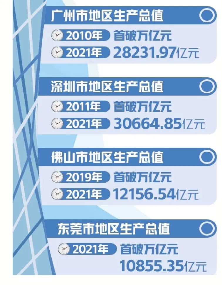 1月24日,东莞市统计局发布数据,2021年东莞市地区生产总值为10855.35亿元,正式跻身万亿元GDP俱乐部。东莞是广东省内继广州、深圳、佛山之后,第四个GDP超万亿元的城市。