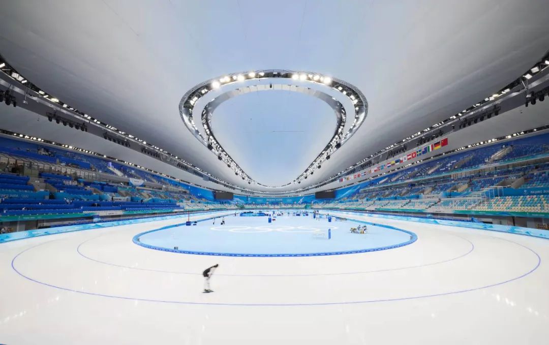 图为国家速滑馆“冰丝带”内景。(图片来源:视觉中国)
