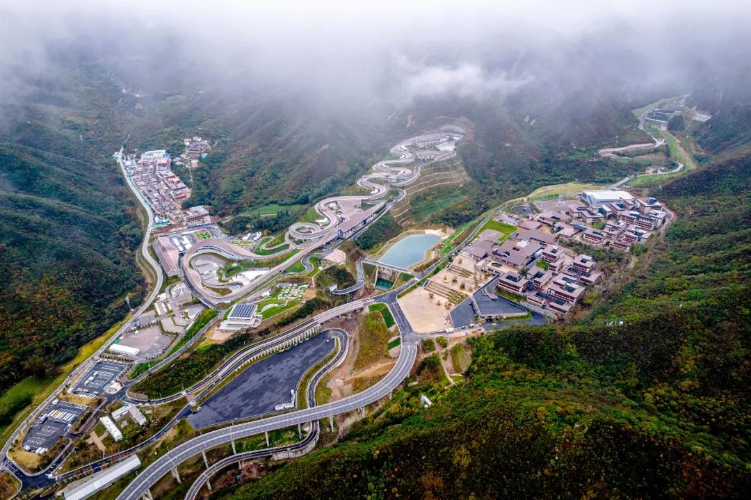 图为国家雪车雪橇中心“雪游龙”和延庆冬奥村。(图片来源:视觉中国)