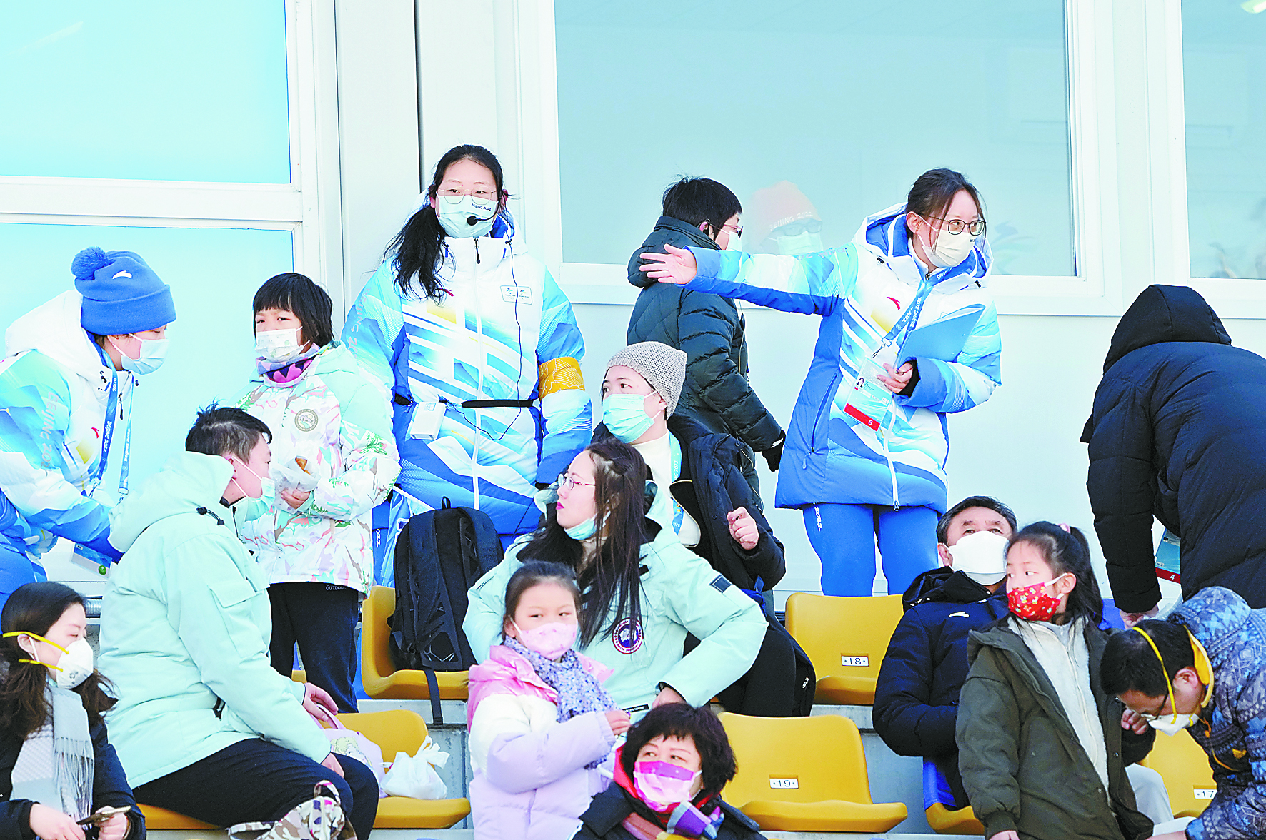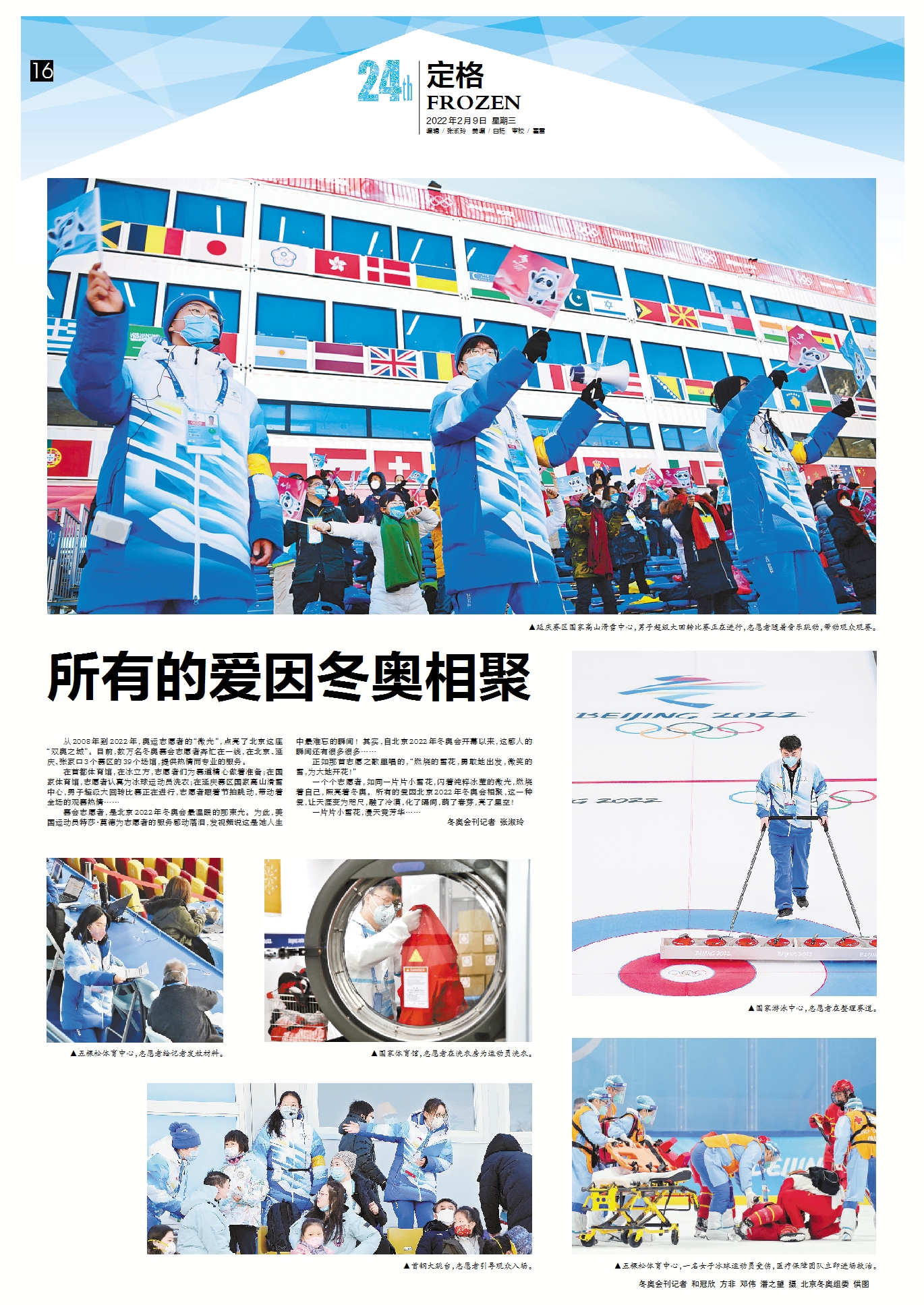 在首都体育馆,在冰立方,志愿者们为赛道精心做着准备;在国家体育馆,志愿者认真为冰球运动员洗衣;在延庆赛区国家高山滑雪中心,男子超级大回转比赛正在进行,志愿者跟着节拍跳动,带动着全场的观赛热情⋯⋯