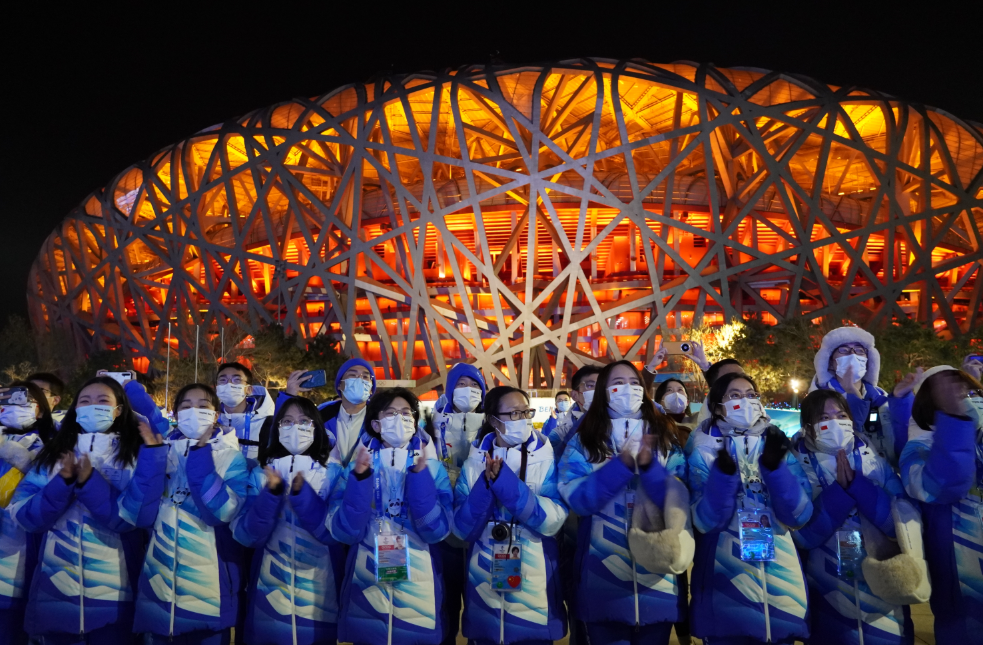 “五星红旗迎风飘扬,胜利歌声多么响亮,歌唱我们亲爱的祖国,从今走向繁荣富强……”2月8日,任子威又一次登上北京颁奖广场最高领奖台,典礼结束退场时,马路对过传来了志愿者的歌声。任子威隔空大声回应:“你们唱得真好听!”还与志愿者留下了隔着马路的“大合影”。